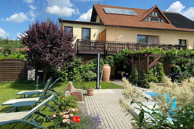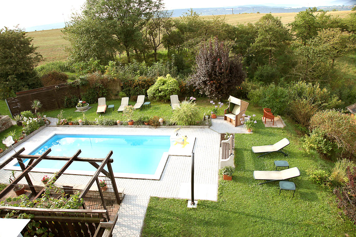 Ganz gleich, ob Sie als Geschäftsreisender, Arbeiter oder Urlauber sich in Jena aufhalten, als unser Gast genießen Sie alle Annehmlichkeiten einer zeitgemäßen Pension: von komfortabel ausgestatteten Zimmern bis zur Poolanlage mit Garten und Liegewiese. Dank unserer Lage bietet sich Ihnen ein einzigartiger Panoramablick auf Jena. 4 Doppelzimmer, 1 Einzelzimmer und 1 Ferienwohnung bieten Platz für bis zu 13 Personen. Unsere Zimmer sind ausgestattet mit bequemen Betten, Dusche/ WC, SAT-TV und Internet. In der Ferienwohnung befindet sich natürlich eine gut ausgestattete Küchenzeile.