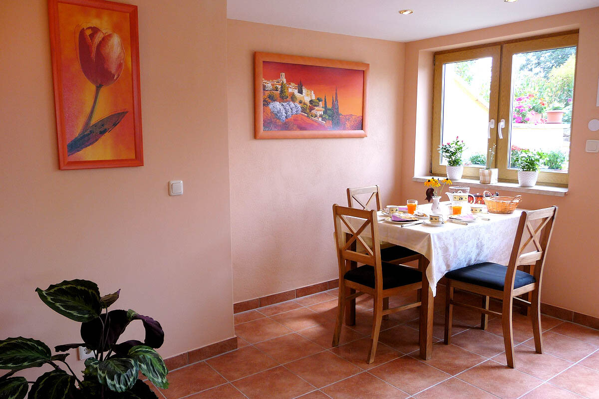 Im unserem mediterranen Frühstücksraum beginnen Sie Ihren Tag mit einem reichhaltigen Frühstück und könne so ganz in Ruhe ihre Tagesplanung besprechen.
