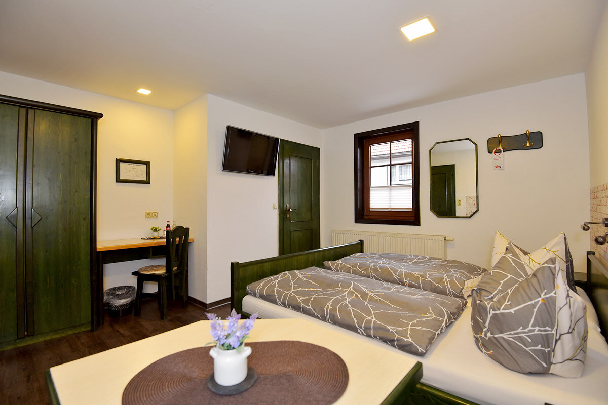 Übernachten können Sie in unserem familiär geführten Haus in 3 Einzelzimmern, 8 Doppelzimmern und 2 Wohnstübchen. Unsere Wohnstübchen sind besonders als Familienzimmer geeignet. Verfügbarkeiten auf Anfrage. Die Einrichtung der Zimmer ist eine Symbiose aus rustikalem ländlichen Stil und modernen Annehmlichkeiten wie Telefon, Sat-TV und Internetzugang. Alle Zimmer sind mit Dusche / WC ausgestattet.