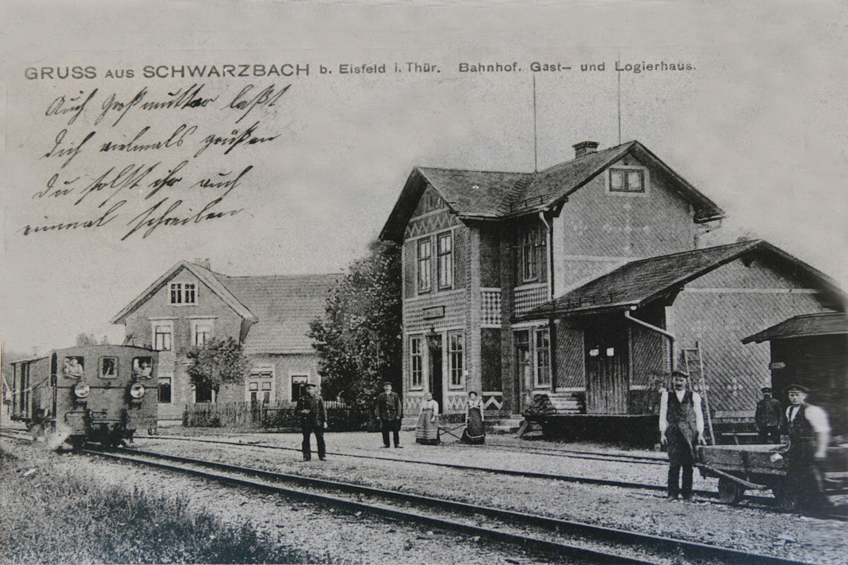 Unser Gasthaus & Pension "Zur Eisenbahn" in Schwarzbach liegt am Südwesthang des Thüringer Waldes (500 m ü NN). Seinen Namen erhielt das Gasthaus durch die ehemalige Schmalspurbahn von Eisfeld über Schwarzbach nach Schönbrunn.