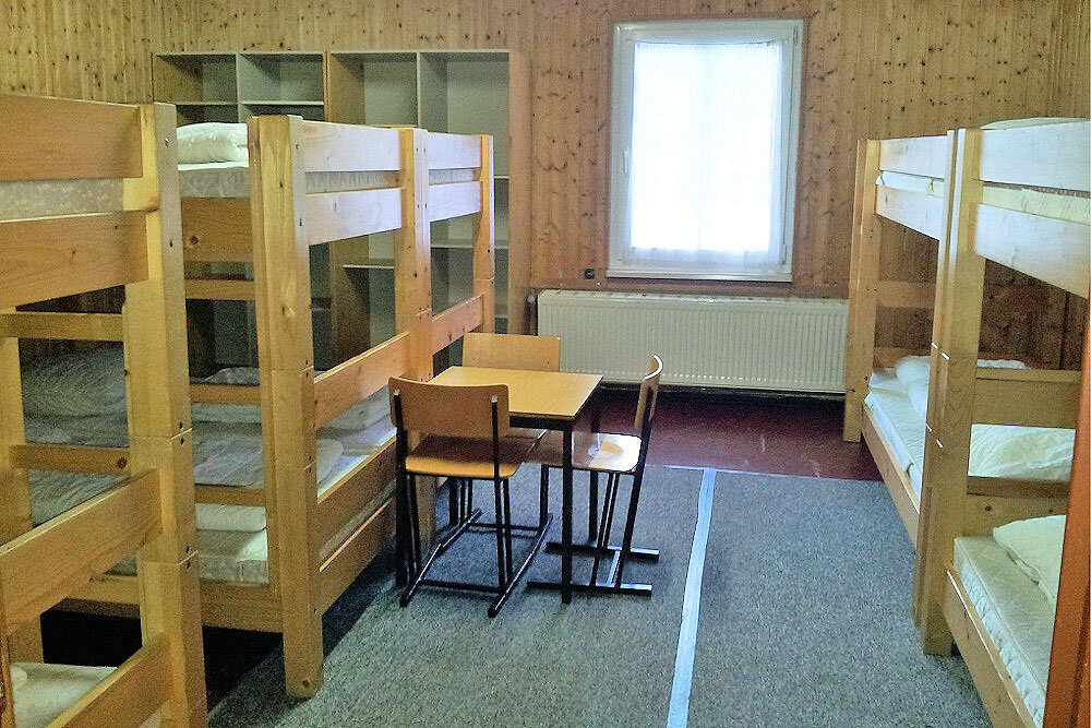 Rechte Hälfte: 10 Schlafplätze (5 Doppelstockbetten)
