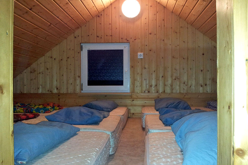 10 Schlafplätze (6 Matratzen im Giebel und 2 Doppelstockbetten im Erdgeschoss)