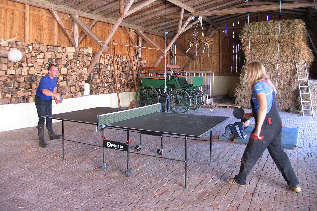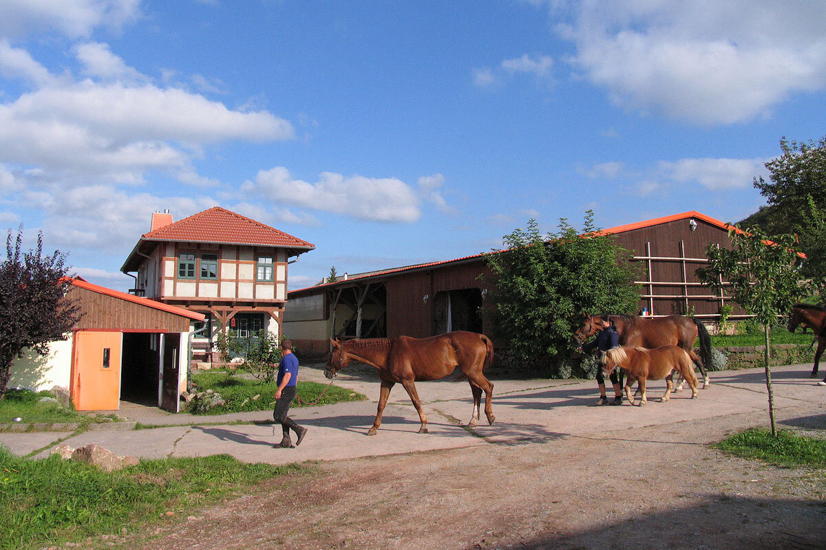 Unser Hof mit Pferdeställen, Kaninchenbox, Scheune und Grillplatz ist Treffpunkt für unsere Gäste und Tierfreunde.