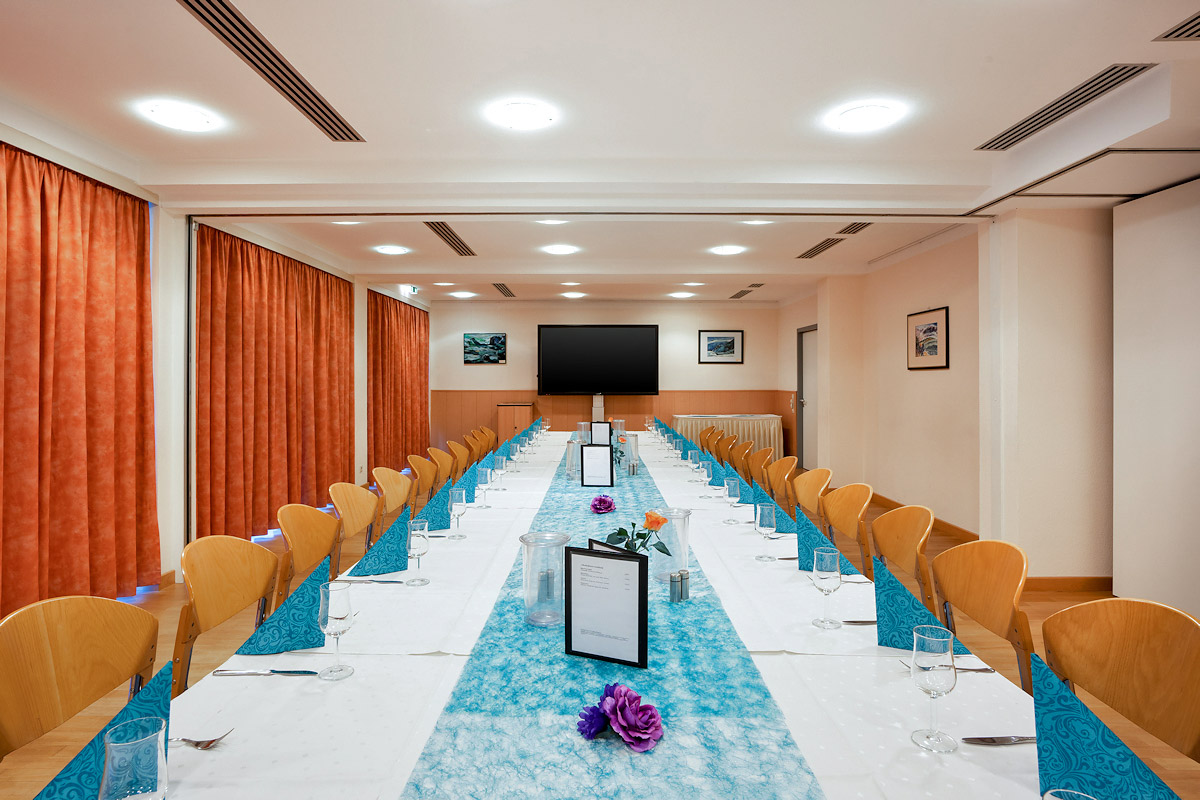4 Tagungsräume a 43 qm (bis 25 Personen) bzw. 2 Tagungsräume a 86 qm (bis 60 Personen) bieten ideale Voraussetzungen für erfolgreiche Tagungen, Konferenzen und Seminare. Alle Räume sind klimatisiert, haben direktes Tageslicht und sind mit moderner Tagungstechnik + kabellosem Internetzugang ausgestattet. Die Räume sind auch für Familienfeiern und Bankette geeignet.