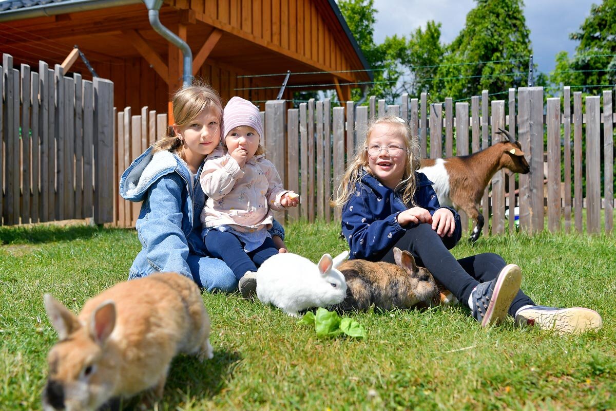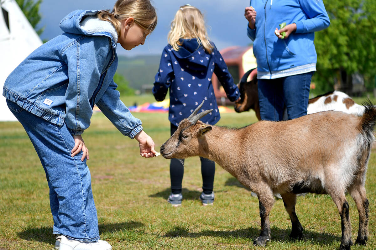 Viele Familien verbringen ihren Urlaub ganz bewusst überwiegend auf unserem Gelände – denn hier gibt es für Kinder viel zu entdecken. Für kleine Ausflüge bieten sich familienfreundliche Ziele in der Umgebung an, wie das Rhöndorf, der Rhönräuberpark, die Viba Nougatwelt, die Wasserkuppe, die Arche Rhön oder Noahs Segel. Zusätzlich profitieren unsere Gäste vom freien Eintritt in ausgewählte Hallenbäder der Region, zum Beispiel in Hilders oder Bad Salzungen.