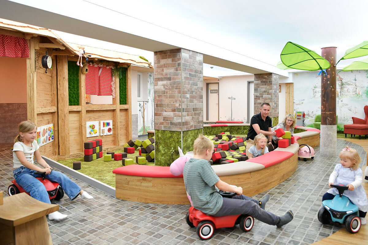 Auf unserem großzügigen Gelände finden Kinder zahlreiche Möglichkeiten zum Spielen und Toben, während Eltern die Ruhe der Rhön genießen können. Moderne Familienzimmer und Familiensuiten, liebevolle Kinderbetreuung sowie ein abwechslungsreiches Kinder-, Familien- und Elternprogramm sorgen dafür, dass sich Groß und Klein vom ersten Moment an wohlfühlen.