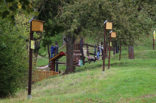 Oberhalb des Schullandheimes schließen landwirtschaftlich genutzte Wiesen an, die dann direkt an das Naturschutzgebiet und den Wald angrenzen.