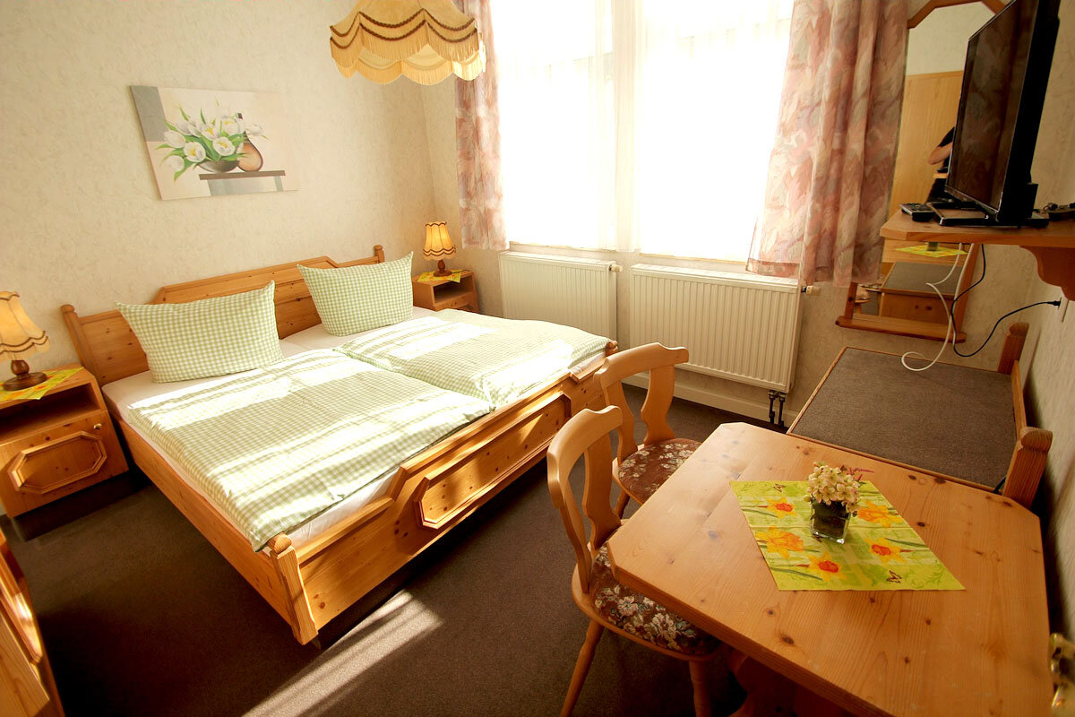 Die Gästezimmer verfügen über Dusche/Bad, WC, Fön, Flachbild-TV, kleinen Kühlschrank und bei 7 Zimmern auch ein Balkon.