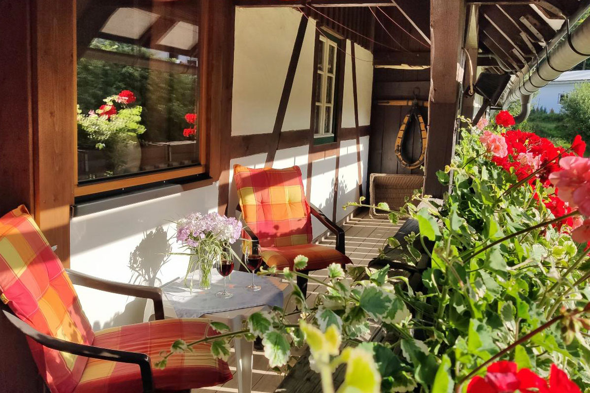 Einen erlebnisreichen Urlaubstag kann man auf dem Laubengang bei einem Glas Wein sitzend, entspannt ausklingen lassen.