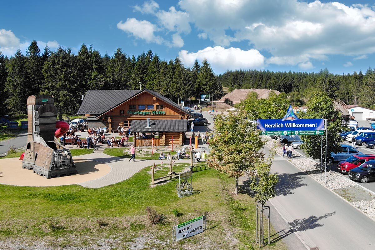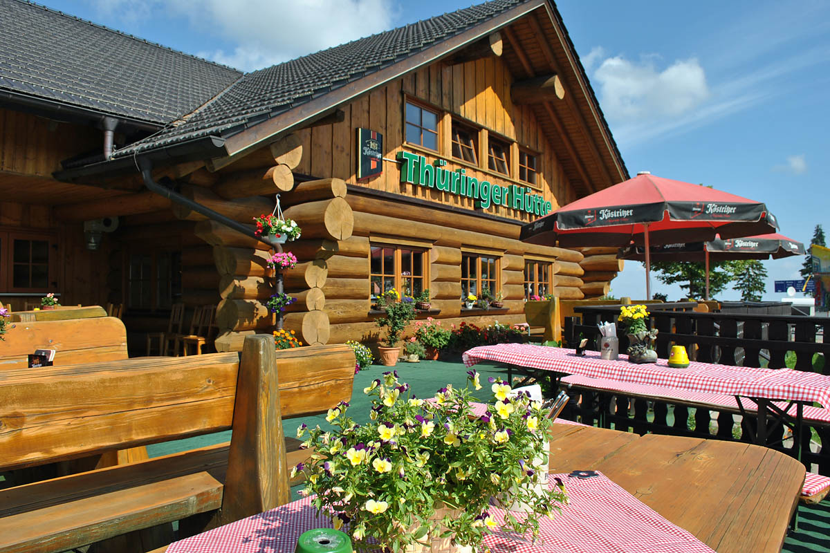 Herzlich willkommen in der "Thüringer Hütte", einem rustikalen Blockhaus direkt auf dem Rennsteig ("Am Grenzadler") östlich von Oberhof.