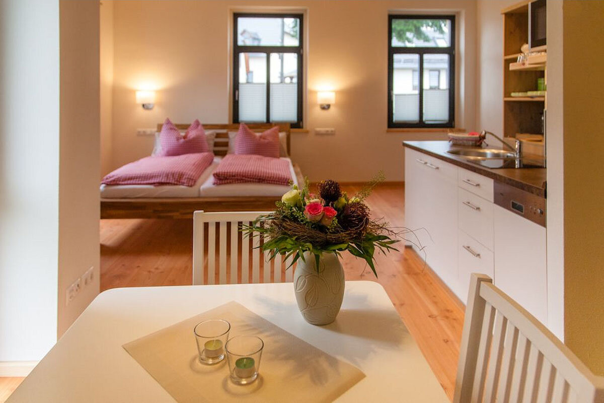 Insgesamt 10 individuell gestaltete Appartements erwarten Sie. Zwei Appartements sind barrierefrei zugänglich. Eines der Klassenzimmer ist ein Veranstaltungs- und Meetingraum für bis zu 40 Personen mit Terrasse. (30 Mbit Internet Zugang, 2.4/5 GHz AC WLAN oder Gigabit kabelgebunden, Smart-TV)