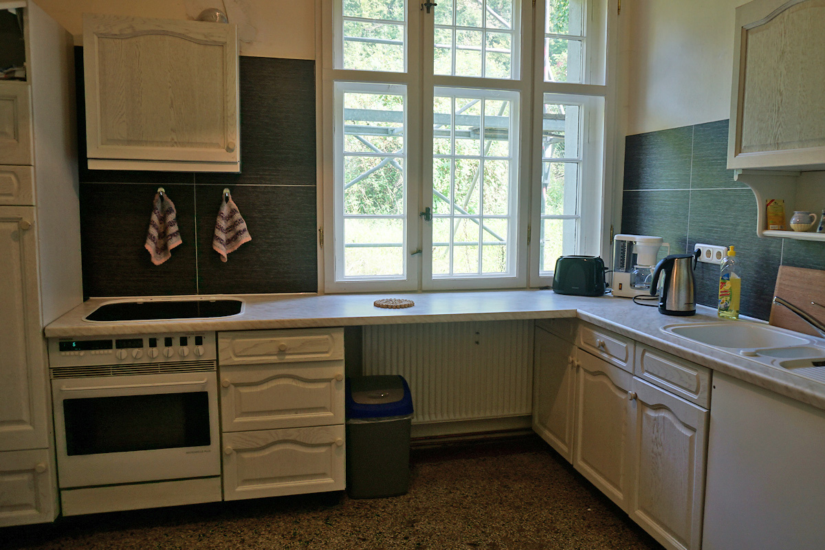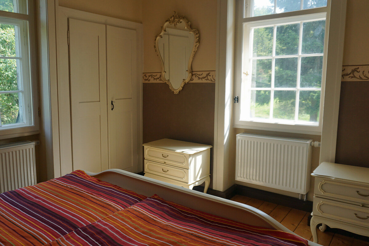 Die Villa liegt etwas erhöht hinter dem Schloss mit Blick auf den Park. Für Kinder ist es schön, dass die Stallungen mit all den Tieren nur vierzig Meter entfernt sind. Öffentliche Straßen mit Verkehr gibt es im Umkreis von mehreren Kilometern nicht. Das Haus bietet Schlafmöglichkeiten für 4 Erwachsene und 3 Kinder, kann aber auf das Doppelte aufgebettet werden.