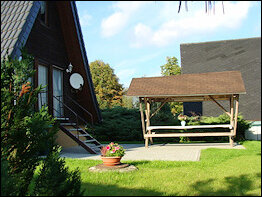 Die Finnhütte wird umfasst von einem schön angelegten Gartenbereich. Hier können Sie bei schönem Wetter bereits morgens gemeinsam frühstücken, Ihre Tagesplanung besprechen oder aber am Ende des Tages Ihre gesammelten Eindrücke Revue passieren lassen. Neben der vorhandenen überdachten Holztischsitzgarnitur stehen 2 Liegestühle und ein Grill zu Ihrer Verfügung.