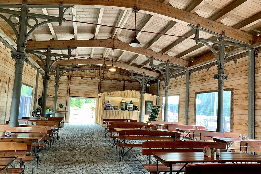 Die frühere Säulenhalle mit den originalen Säulen vom Erfurter Hauptbahnhof wurde neu verkleidet, ein "Bierhäusle" integriert und die Gaststube renoviert. An warmen Sommertagen lädt die Waggonterrasse zum Verweilen ein.
