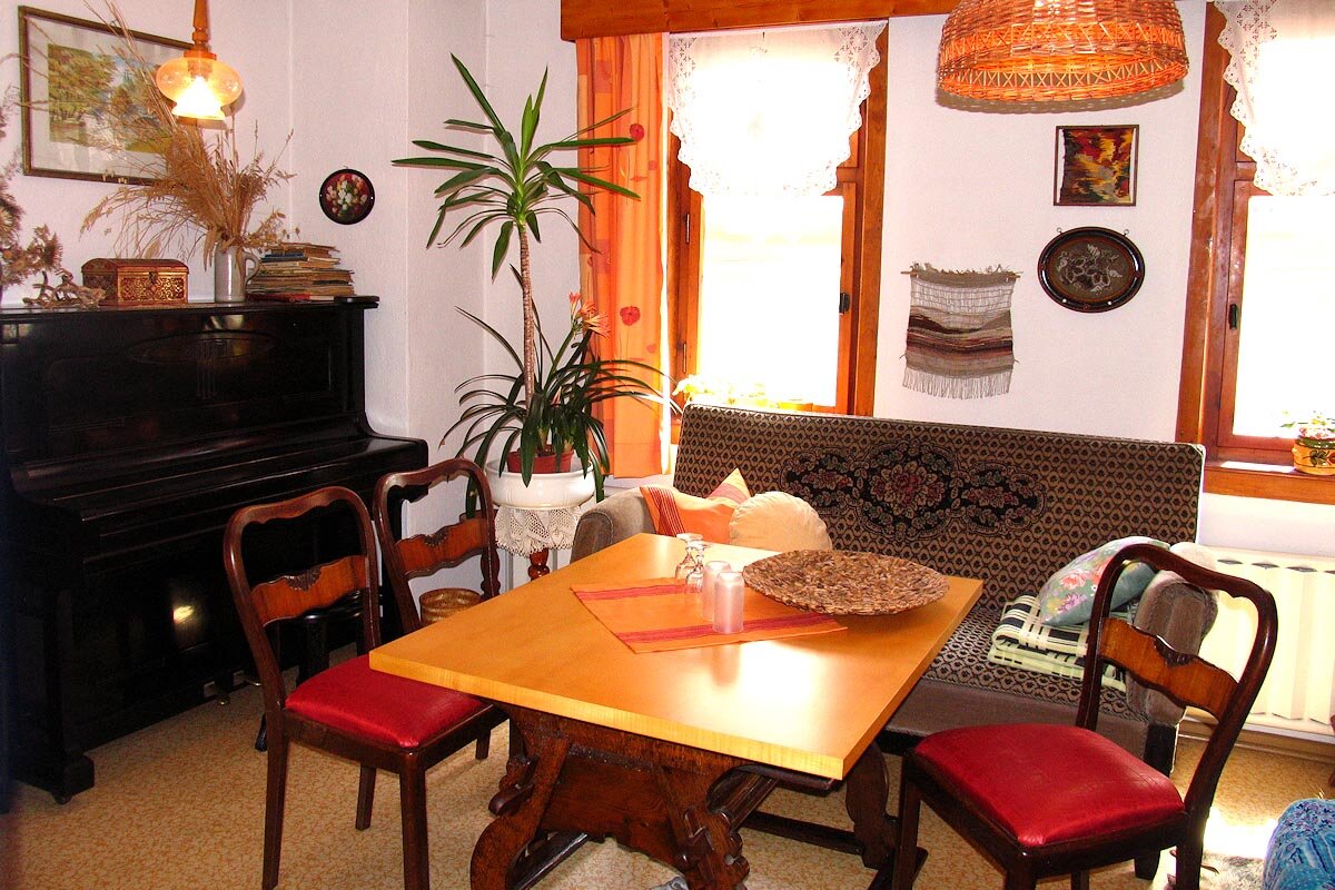 Einen Abstecher in das urgemütliche Gasthaus lohnt sich allemal. Wer jedoch moderne Gastronomie erwartet, wird schnell bemerken, dass hier die Uhren langsamer schlagen. Der Gast wird integriert in einen familiären Rhythmus, erfährt Geschichten und Geschichtchen und manchmal trifft er die Wirtin mit den goldenen Händen bei ihren kreativen Experimenten an.