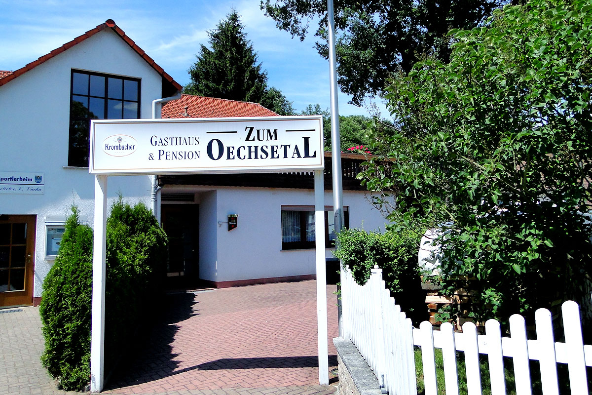 Radfahrer erreichen das Gasthaus "Zum Oechsetal" sowohl über den Werratal-Radweg als auch über den Radweg Fulda-Werra-Rhön. Der Jakobsweg für ebenfalls direkt durch Vacha.