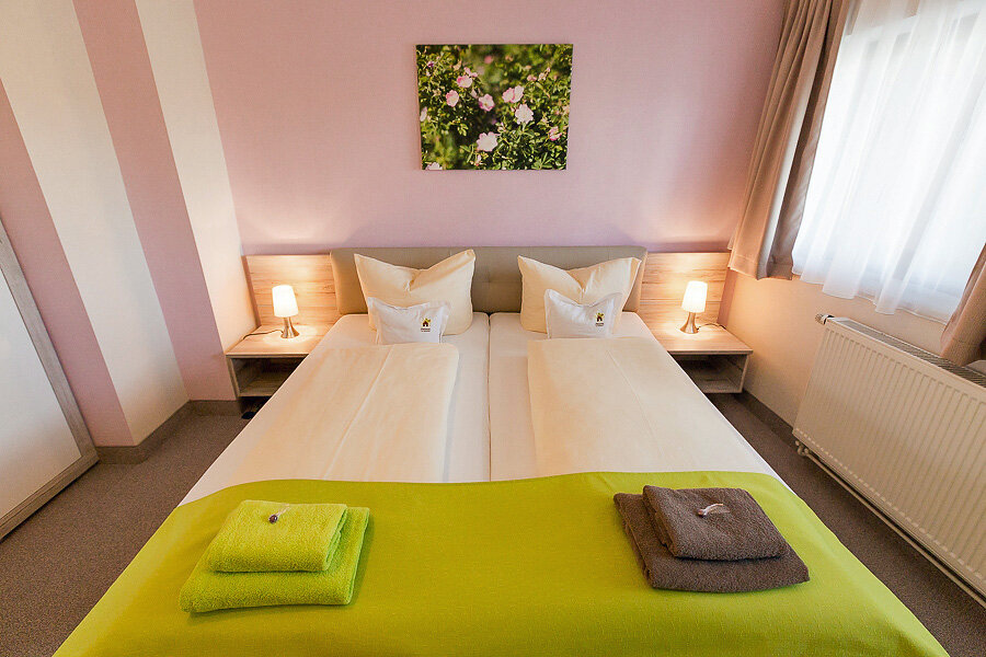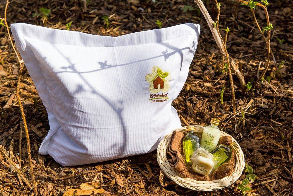 die liebevoll ausgewählt und auf die Räumlichkeiten abgestimmt sind. Als besonderes Augenmerk ist jedes Bett ausgestattet mit einem Dinkel-Schlummer-Kräuter-Kissen sowie unserer Kräuterkosmetik.