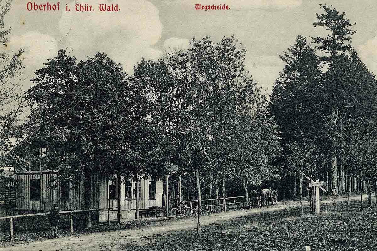 Historie: Im tiefen Mittelalter fuhren bis zu 18 Handelswege über den Thüringer Wald. Überlieferungen zufolge befanden sich bereits um 1540 an dieser Stelle Gebäude, welche einst als Wegzollstelle dienten. Später wurde dieses Haus als Raststätte und Herberge betrieben.
