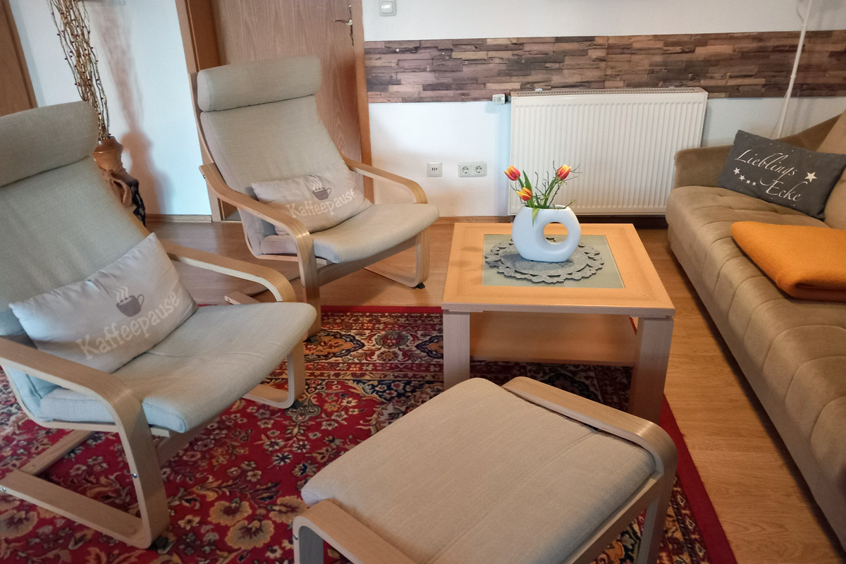 In unserer Nichtraucher-Ferienwohnung finden bis zu 4 Personen Platz. Die Wohnung liegt ebenerdig in unserem Wohnhaus und ist über einen separaten Eingang mit kleinem Vorbau zugänglich. Sie eignet sich deshalb auch für Senioren und Menschen mit Gehbehinderung. Gern klären wir dazu im Vorfeld mit Ihnen alle Fragen!