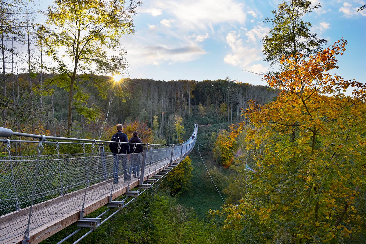 Die 180 Meter lange Hängeseilbrücke erreicht ihr gut über die Autobahnen A38 / A71. Vom Wanderparkplatz in Heldrungen - Braunsroda geht es auf einer gemütlichen Wanderung ein paar Kilometer durch den Wald. Die sechlängste Hängeseilbrücke bietet in einer Höhe von 25 Meter tolle Ausblicke über das Bärental.