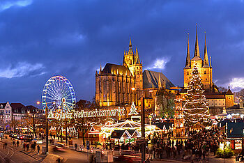 Thüringer Weihnachtsmärkte verzaubern in der Adventszeit Menschen aus dem gesamten Bundesgebiet. Beispielsweise verwandelt sich Erfurts historische Altstadt in ein Winterwunderland. Der Erfurter Weihnachtsmarkt zählt zu den schönsten in ganz Deutschland und besticht durch seine malerische Kulisse rund um den Domplatz und die Krämerbrücke. Über 200 festlich geschmückte Stände bieten Kunsthandwerk, kulinarische Spezialitäten und weihnachtliche Geschenkideen. Ein besonderes Highlight ist die riesige Weihnachtspyramide sowie die lebensgroße Krippe mit handgeschnitzten Figuren. Der Duft von Glühwein, gebrannten Mandeln und Thüringer Bratwurst erfüllt die Gassen und schafft eine stimmungsvolle Atmosphäre, die Gäste Jahr für Jahr begeistert.