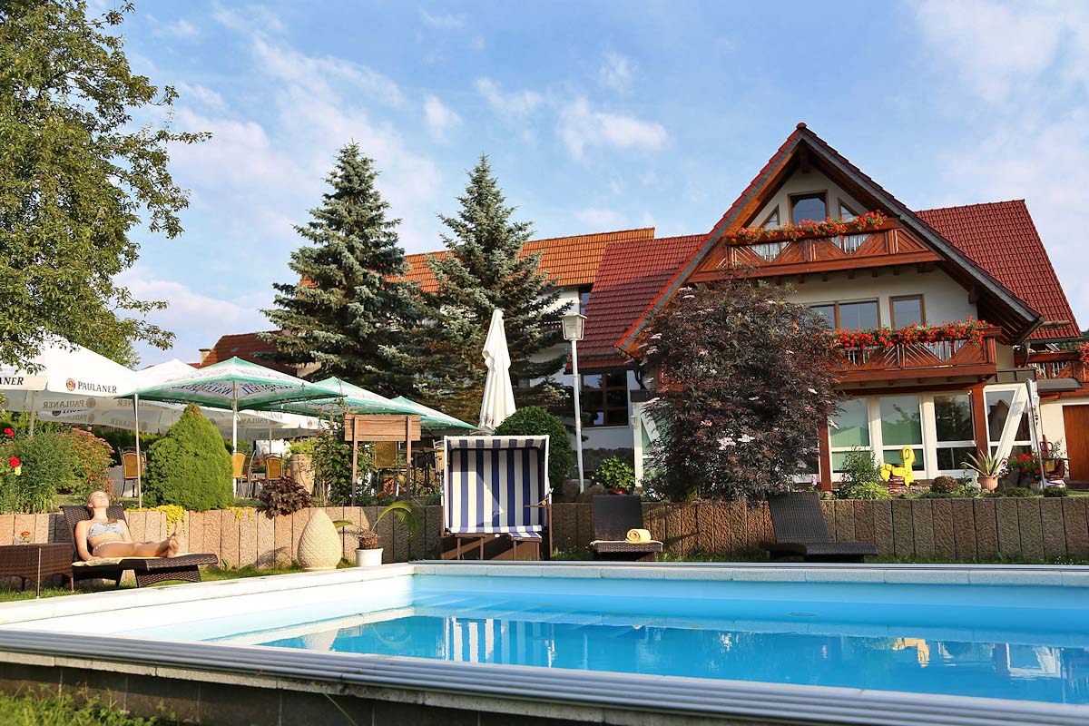 Im idyllischen Saaletal erwartet Sie ein traditionsreiches Landhotel, das Ruhe, Natur und Erholung harmonisch verbindet. Ein besonderes Highlight ist der Pool im grünen Innenhof – ideal, um am Morgen frisch einzutauchen oder nach einem Ausflug in die umliegende Landschaft zu entspannen.