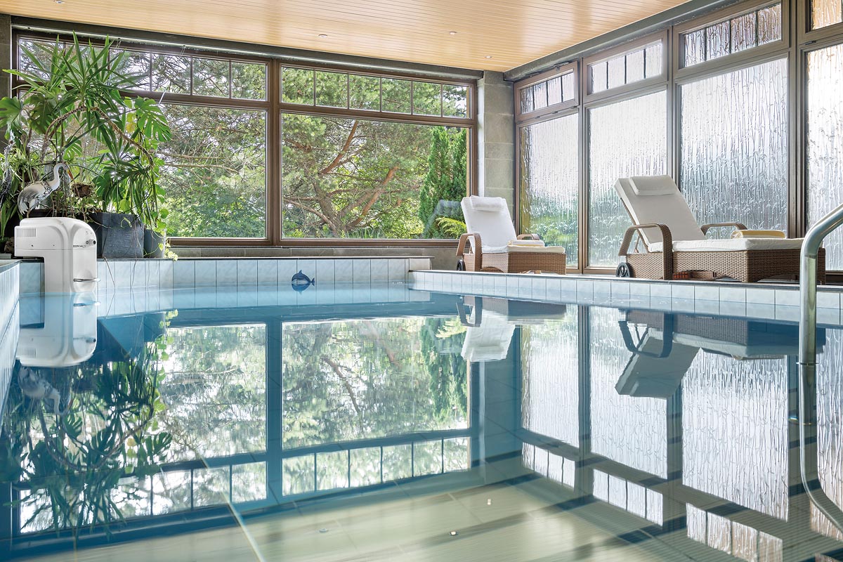 Im Sommer lädt der solarbeheizte Garten‑Swimmingpool mit Liegewiese zur erfrischenden Abkühlung ein. Für wohltuende Entspannung zu jeder Jahreszeit sorgen die finnische Sauna, das Solarium sowie eine Kosmetik‑ und Massageabteilung mit vielfältigen Anwendungen für Körper und Geist.