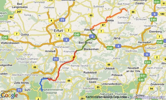 Ilmenau, Stadtilm, Kranichfeld, Tannroda, München, Bad Berka, Hetschburg, Weimar, Oßmannstedt, Apolda, Bad Sulza, Niedertrebra, Großheringen