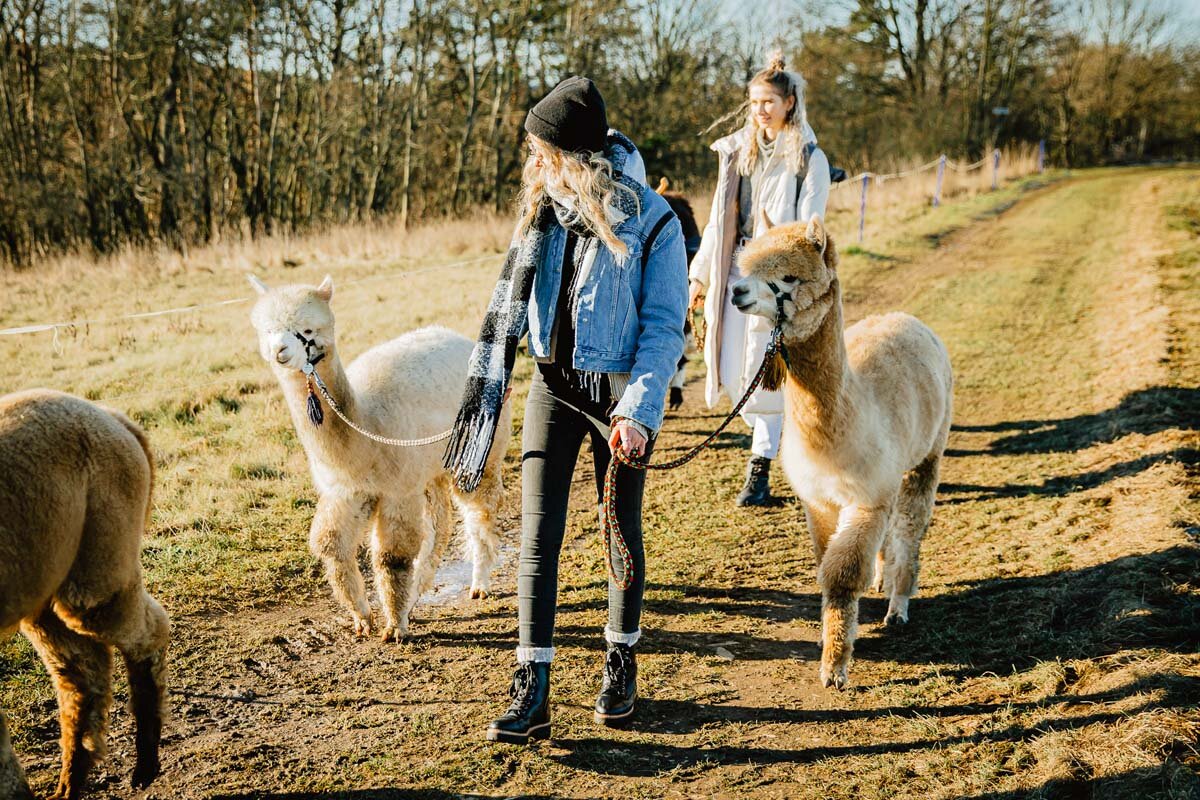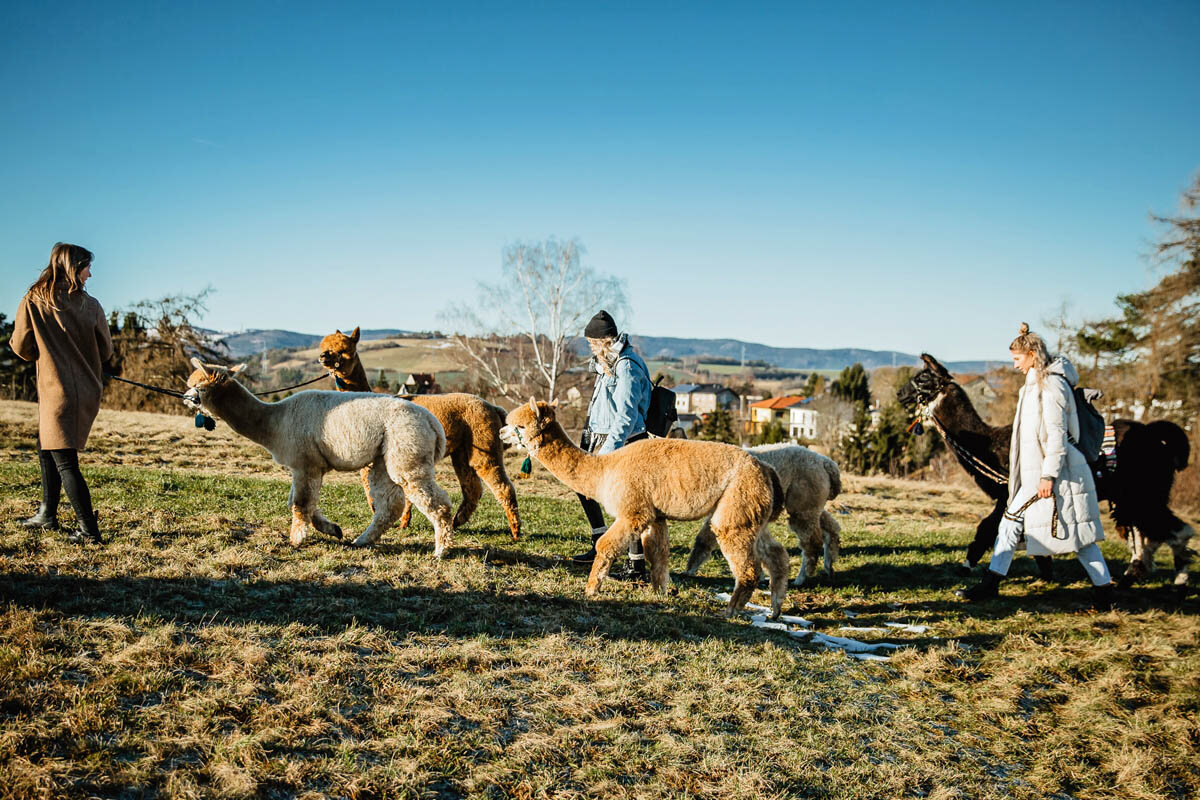 Die Alpakafarm bietet Alpakawanderungen in vier Schwierigkeitsstufen an. Die Wanderungen unterscheiden sich in der Entfernung, der Wanderstrecke und der Dauer. Alle Alpakawanderungen enthalten die folgenden Leistungen: