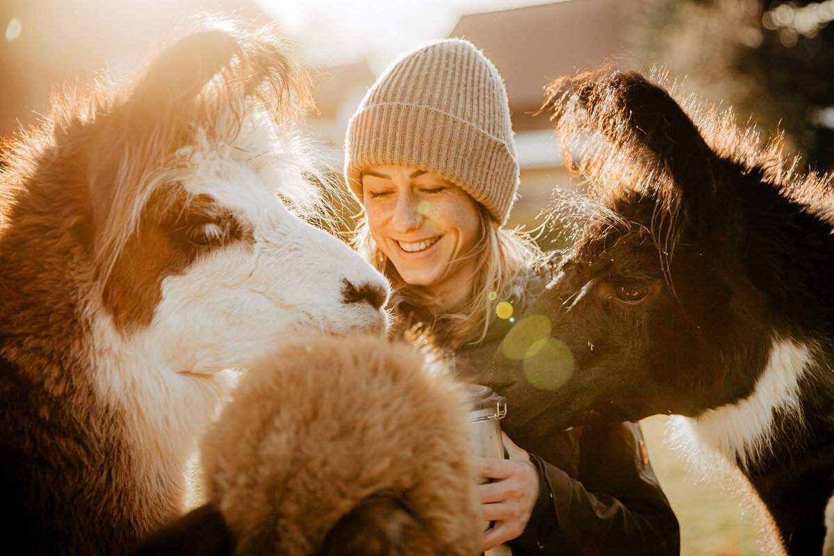 Tiere brauchen Menschen – aber noch mehr brauchen Menschen Tiere. Tierliebhaberin und Inhaberin Michelle Dinter ist Fachkraft für tiergestützte Interventionen und bietet tiergestützte Aktivitäten & Events, wie z.B. geführte Wanderungen, Kindergeburtstage, Alpakashootings, pädagogische Projekte für Kindergärten und Schulen sowie tiergestützte Förderung von Menschen mit besonderen Bedürfnissen und Einschränkungen an. Die Begegnung von Mensch & Tier sollte individuell und entspannt ablaufen, weshalb kleinere Gruppen am besten geeignet sind.