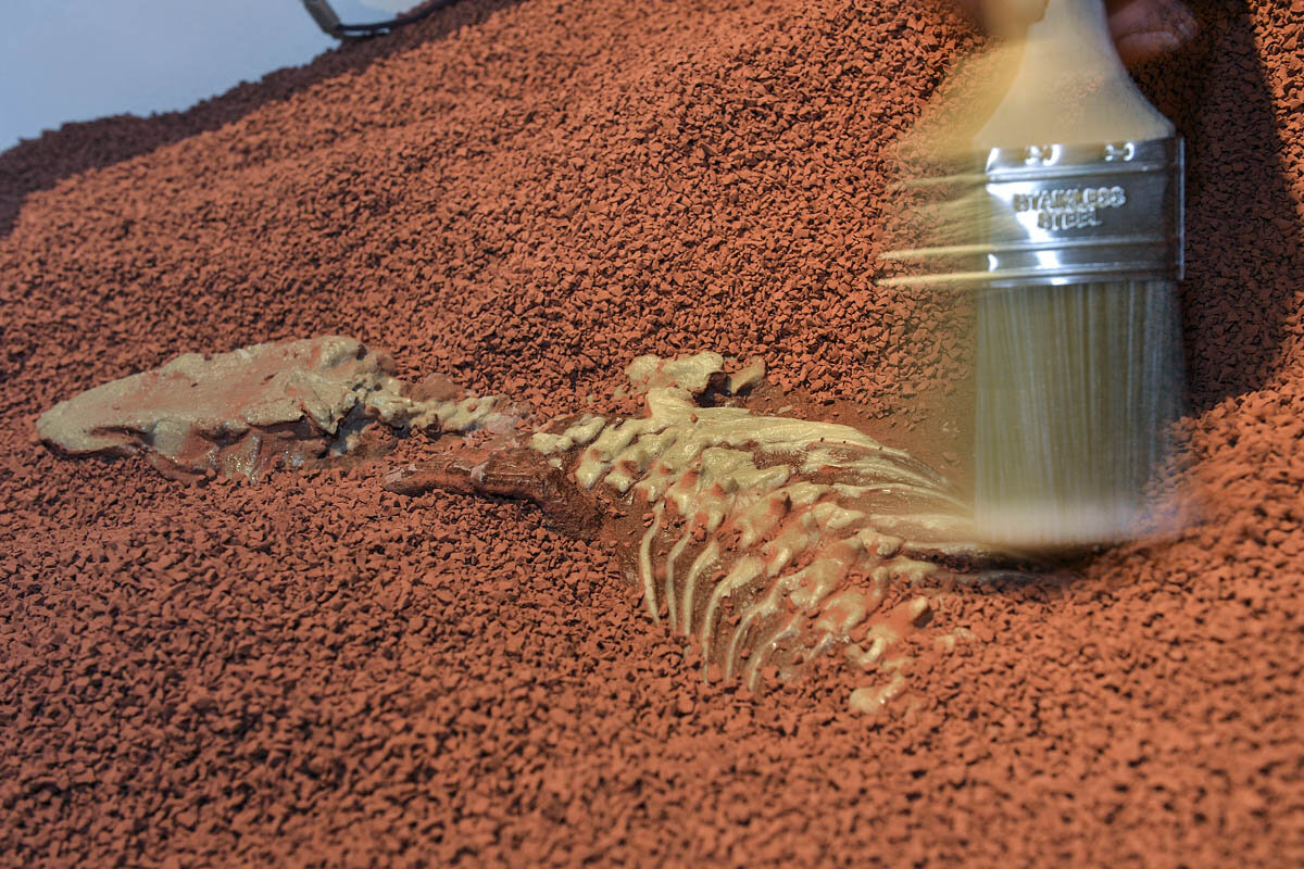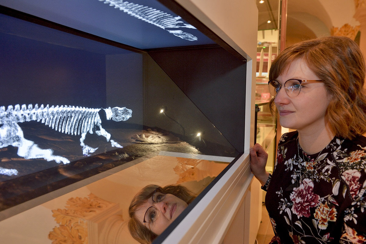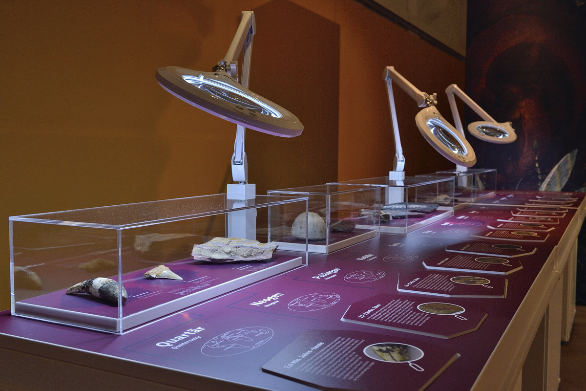 Gelegentliche Schaupräparationen bieten Gelegenheit, den geowissenschaftlichen Präparator*innen live bei der Bearbeitung der Originalfossilien über die Schulter zu schauen. Neueste Forschungsergebnisse werden vorgestellt und durch regelmäßige Aktualisierungen lohnen sich wiederholte Besuche der Ausstellung.