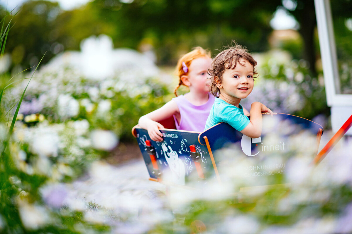 Auf dem Weg zurück zum Festplatz lockt das GärtnerReich mit 29 eigens für den Gartenpark im Erzgebirge entworfenen und gefertigten Spielgeräten zu unendlichem Spielspaß. Familien mit Kindern beginnen den Parkbummel wohl gleich in diese Richtung. Rutschen, Schaukeln oder Wippen haben die Formen von bekannten Erfurter Obst- und Gemüsesorten oder von typischen Gartengeräten. Fantasievolle Namen wie Dahlienschwindel, Hackenknacken oder Erdbeerkaktusrutsche ergänzen den aktiven Spielspaß noch verbal.