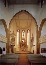 Ebenso ist die Kirche mit Kunst- und Kulturgeschichte verbunden. Die Eltern von Johann Sebastian Bach, Johann-Ambrosius und Elisabeth, werden 1668 hier getraut. Der gotische Chorraum veranschaulicht in seiner Ausstattung 40 Jahre Thüringer Renaissance aus der Erfurter Steinmetz- und Holzbildhauerwerkstatt Hans Fridmann der Ältere (gestorben vor 1605) und Hans Fridmann der Jüngere (gestorben um 1628). Künstlerischer Ausdruck, handwerkliche Fertigkeit, architektonische Gestaltung, Formen- und Materialvielfalt erscheinen aus Stein und Holz, als Plastik oder Relief, in Epitaphien (Hans Ziegler 1584, Wolfgang von Tettau 1585, Sigismund von der Sachsen 1593), Kanzel (1598), Taufstein (1608) und Altar (1625). Die Kanzel veranschaulicht gut 50 Jahre nach Luthers Tod evangelische Lehre im ikonographischen Programm. Die vom Bürgertum, den ratsfähigen Bürgern der Stadt, getragene kunstgeschichtliche Periode der Renaissance erhält ihre Ausformung in der Kirche des Bürgertums.