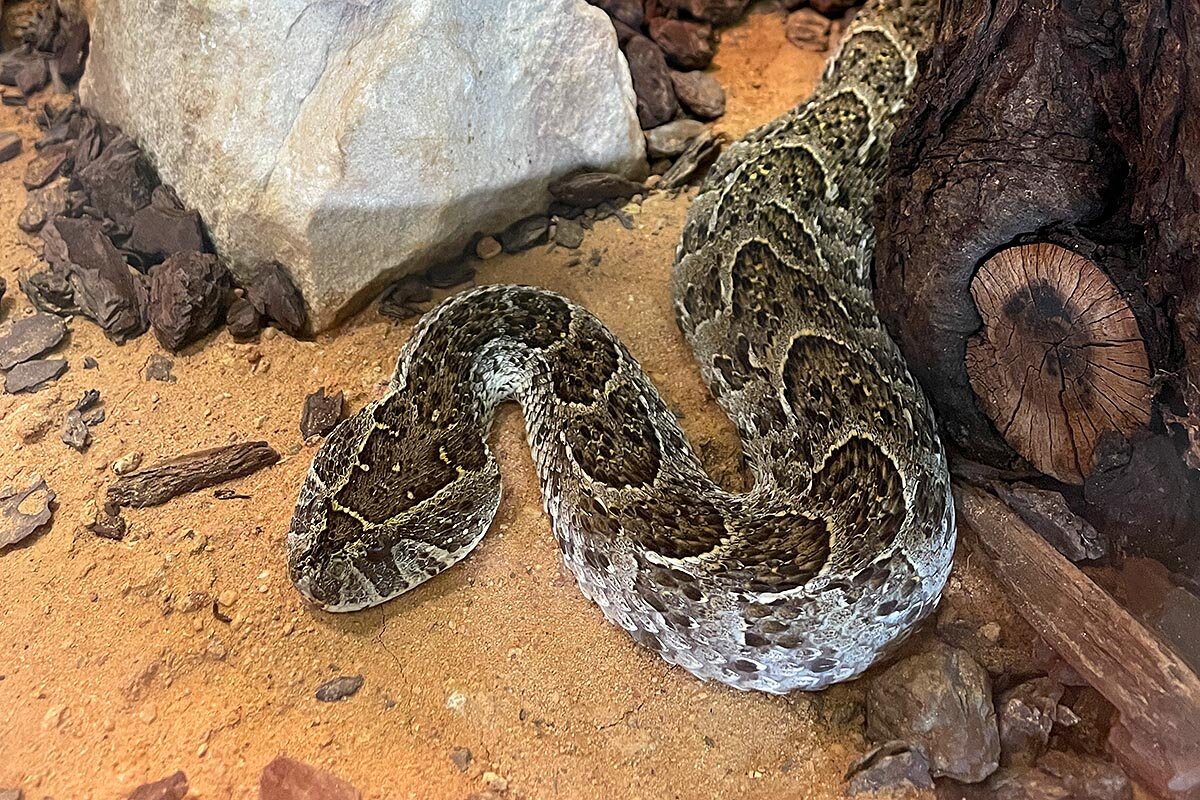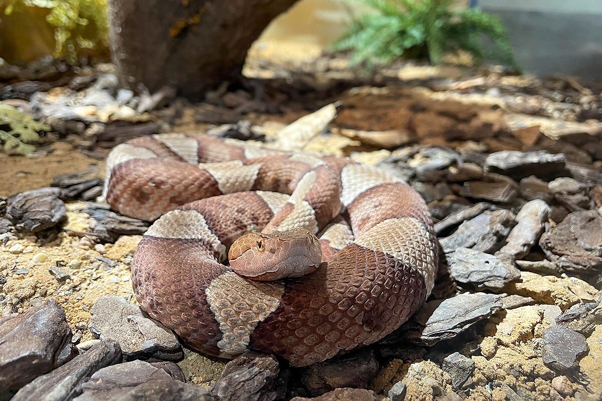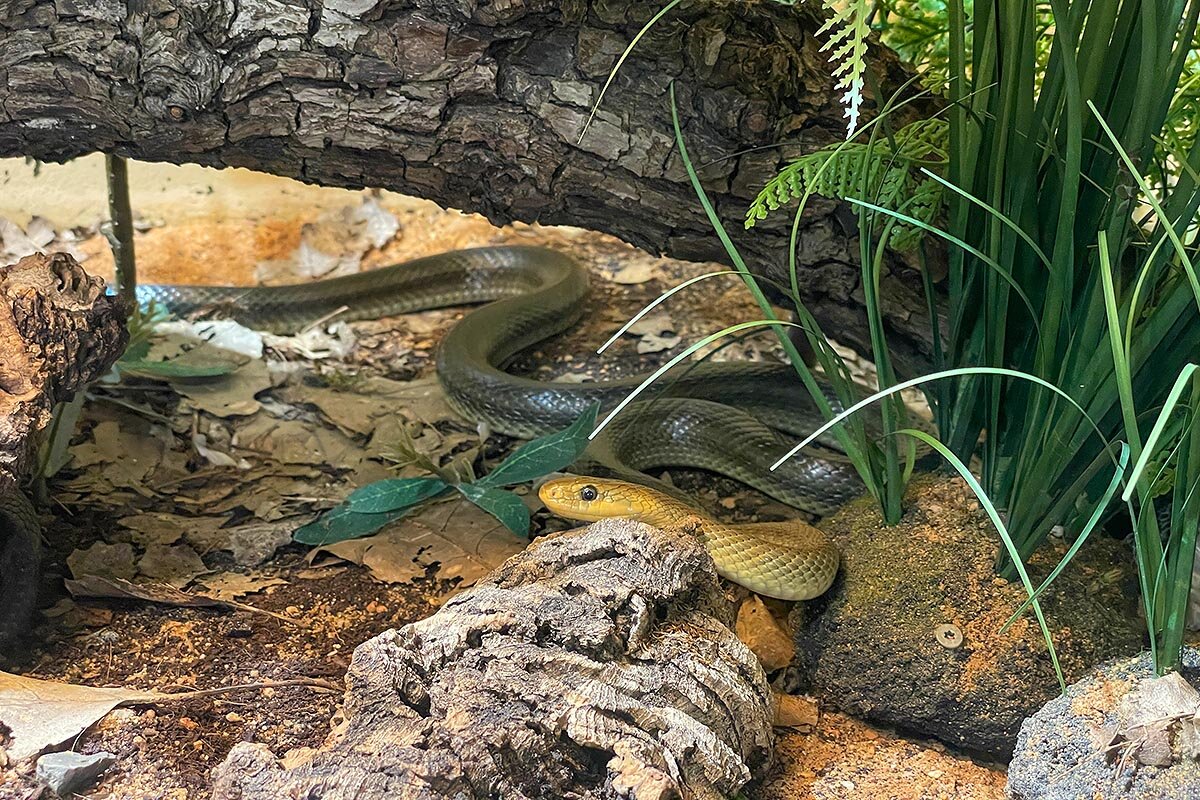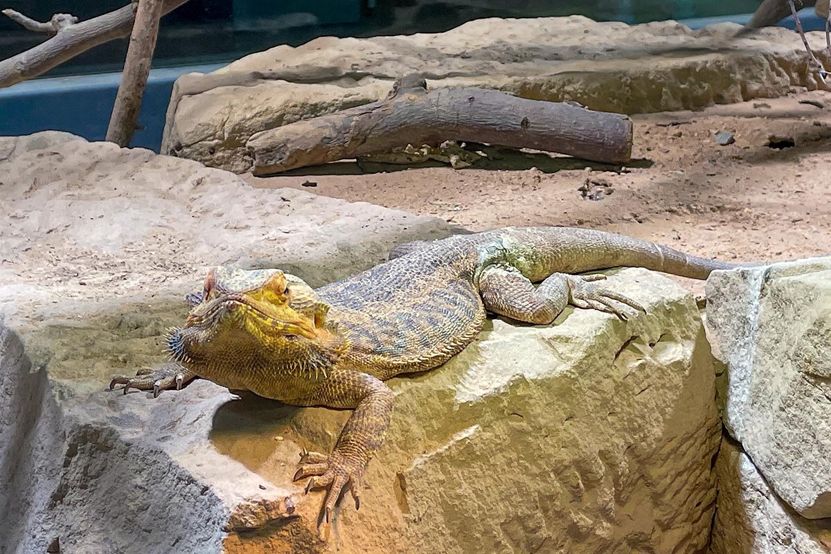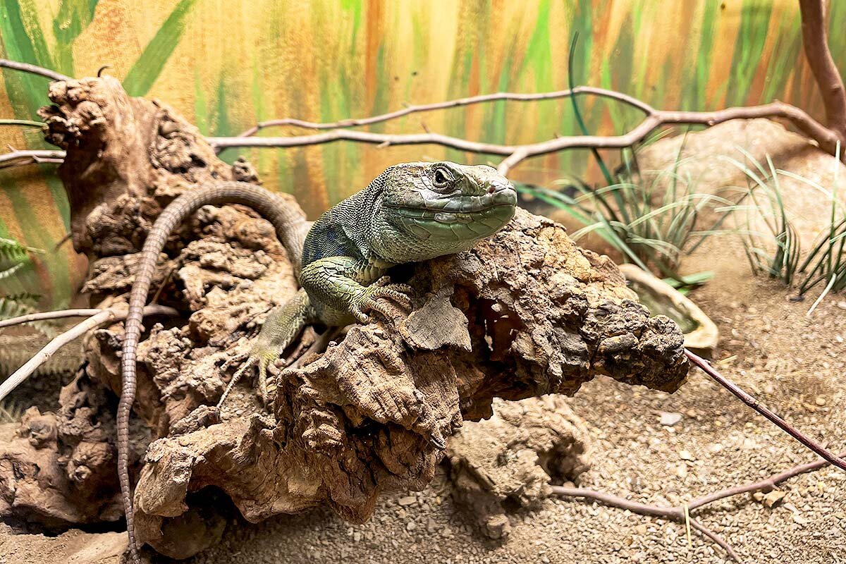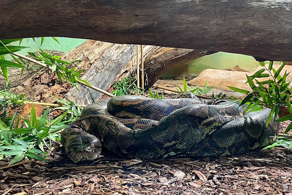 Sieben Großterrarien und 40 Glasvitrinen beherbergen über 80 verschiedene Tierarten. Besondere Attraktion sind die über 5 m langen Netzphytons (P.reticulatus) - die Riesen in dieser Anlage. In der Gifttierausstellung können unter anderen Klapperschlangen - eine der gefährlichsten Schlangenarten Nordamerikas - beobachtet werden. Ein weiteres Highlight stellt die wöchentlich stattfindende Schlangenfütterung dar. Außerdem werden weitere zahlreiche Exoten, wie Bindenwaran, Pantherschildkröten, Vogelspinnen und Skorpione präsentiert.