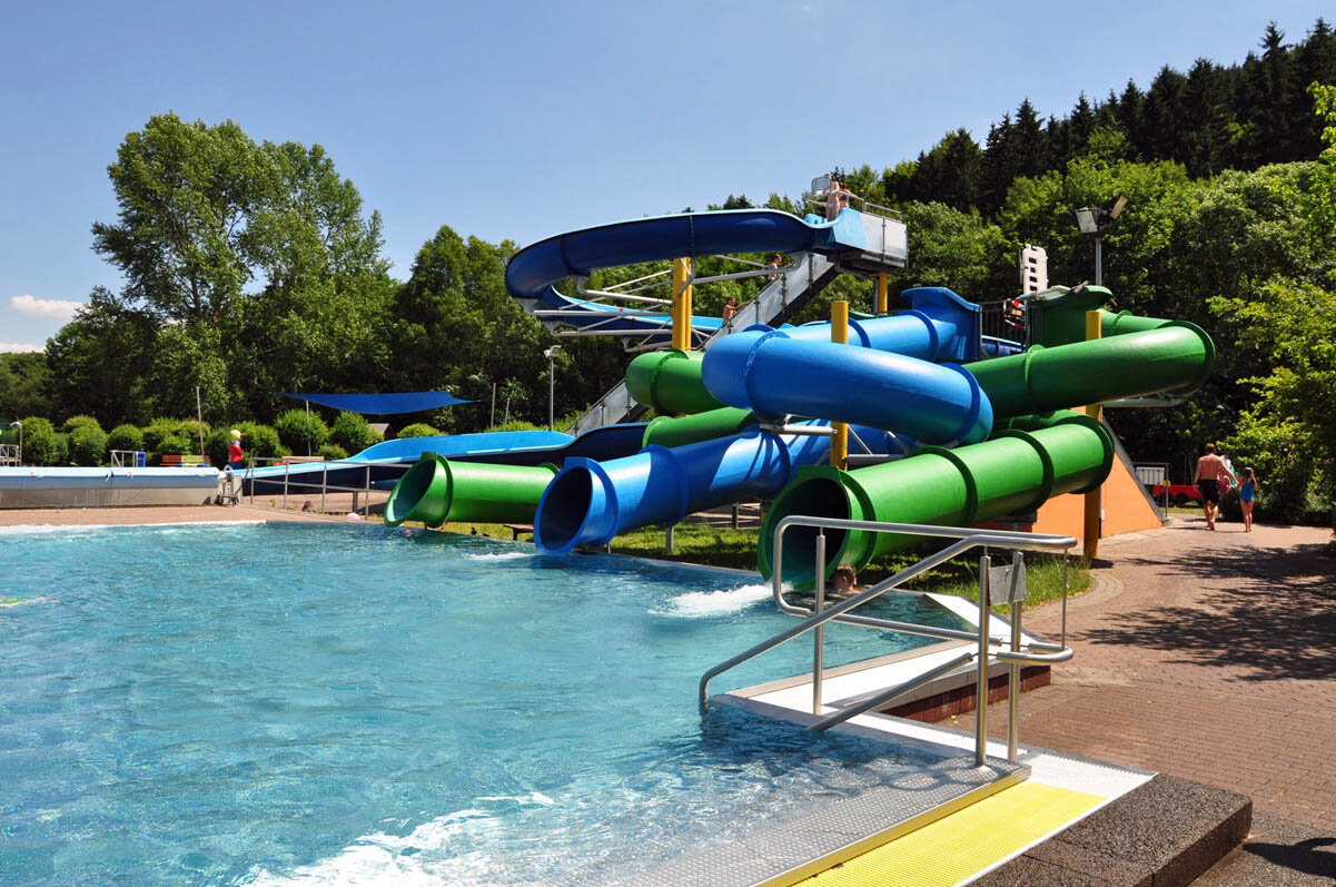 Das Freibad verfügt über ein Sportbecken zum Schwimmen (25 x 50 m), Sprungtürme (1, 3 und 5 Meter), Erlebnisbecken (Nichtschwimmer) 25 x 50 m mit vielen Wasserattraktionen, eine 73 m lange Wasserrutsche, 3 Röhrenrutschen (von leicht bis schwer), eine Neptunrutsche, Babybecken, große Liegewiese zum Sonnen und Ausruhen, einen Beach-Volleyball-Platz, einen Kinderspielplatz, Tischtennisplatte, Umkleideräume, Babywickelraum, Imbiss mit Speisen, Getränken und Eis.