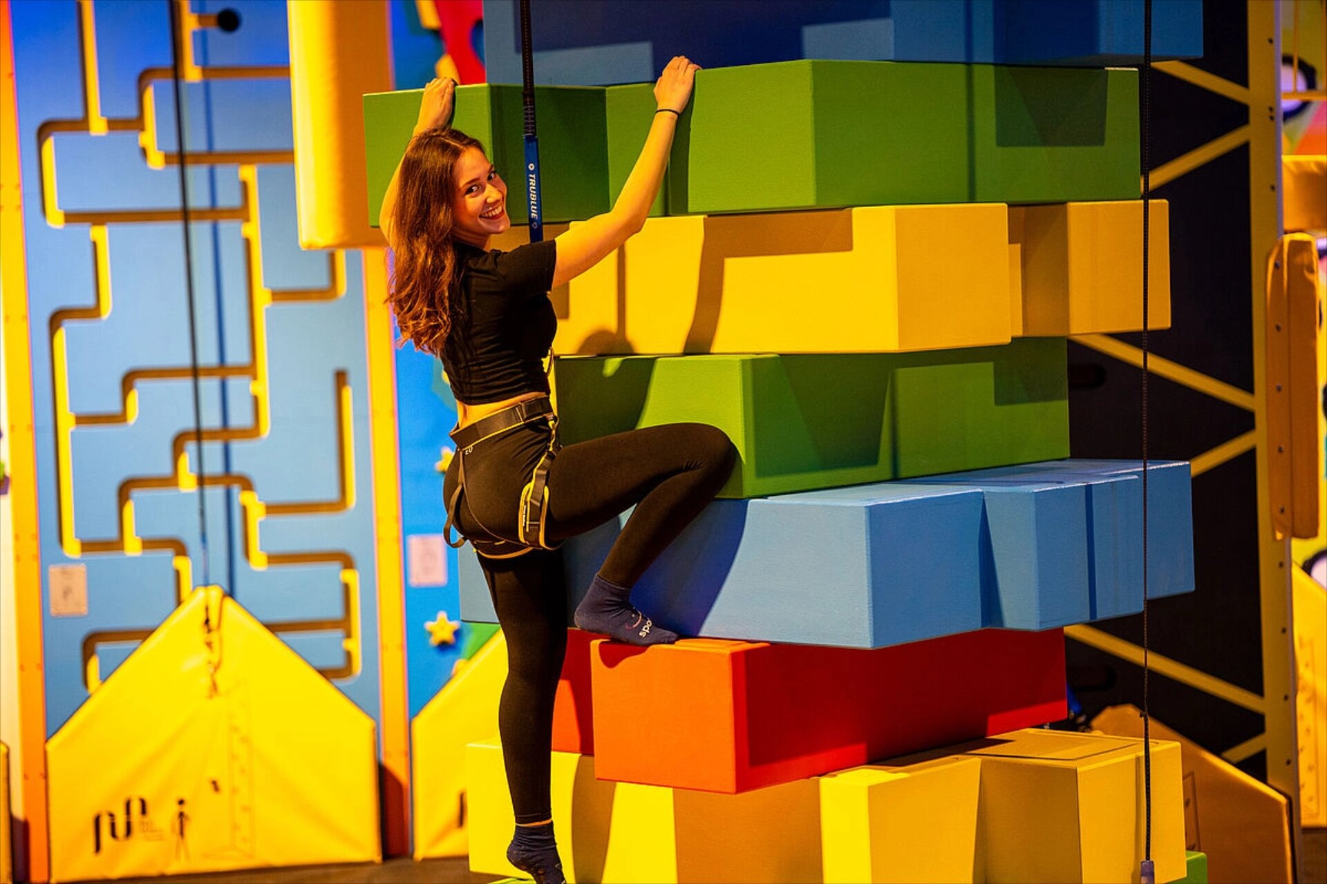 Die Funwalls bieten ein völlig neues Klettererlebnis. Die farbenfrohen, interaktiven Kletterwände entführen die Besucherinnen und Besucher in fantasievolle Welten – von mittelalterlichen Kletterschlössern über labyrinthartige Pfade bis hin zu Bohnenstängeln oder riesigen Spinnennetzen. Dank des integrierten Selbstsicherungssystems kann man die Wände allein erklimmen und sich ganz auf Balance, Präzision und Mut konzentrieren.