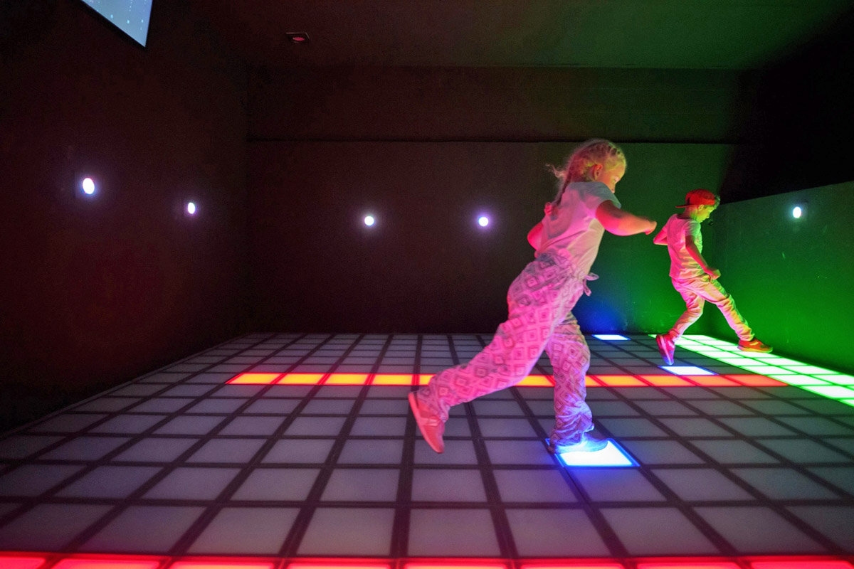 Die VALO Arena bietet ein völlig neues Gaming‑Erlebnis, das ohne Headsets oder komplizierte Technik auskommt. Bis zu sechs Spielerinnen und Spieler können gleichzeitig in immersive Welten eintauchen, miteinander sprechen, lachen und sich gemeinsam auspowern. Die dynamischen Spiele verbinden Bewegung und Gaming auf einzigartige Weise.