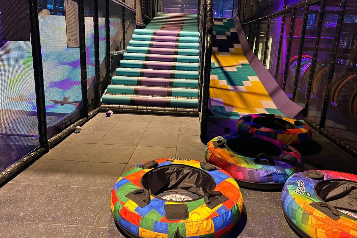 Die Trampolinanlage ist der ideale Ort, um sich richtig auszupowern. Zahlreiche miteinander verbundene Trampoline warten darauf, dass man seine Sprungkraft testet oder gemeinsam mit Freunden Spiele ausprobiert. Dank hochwertiger Materialien und vollständig gepolsterter Elemente kann man sich voll auf den Spaß konzentrieren, während die Sicherheit jederzeit gewährleistet ist.