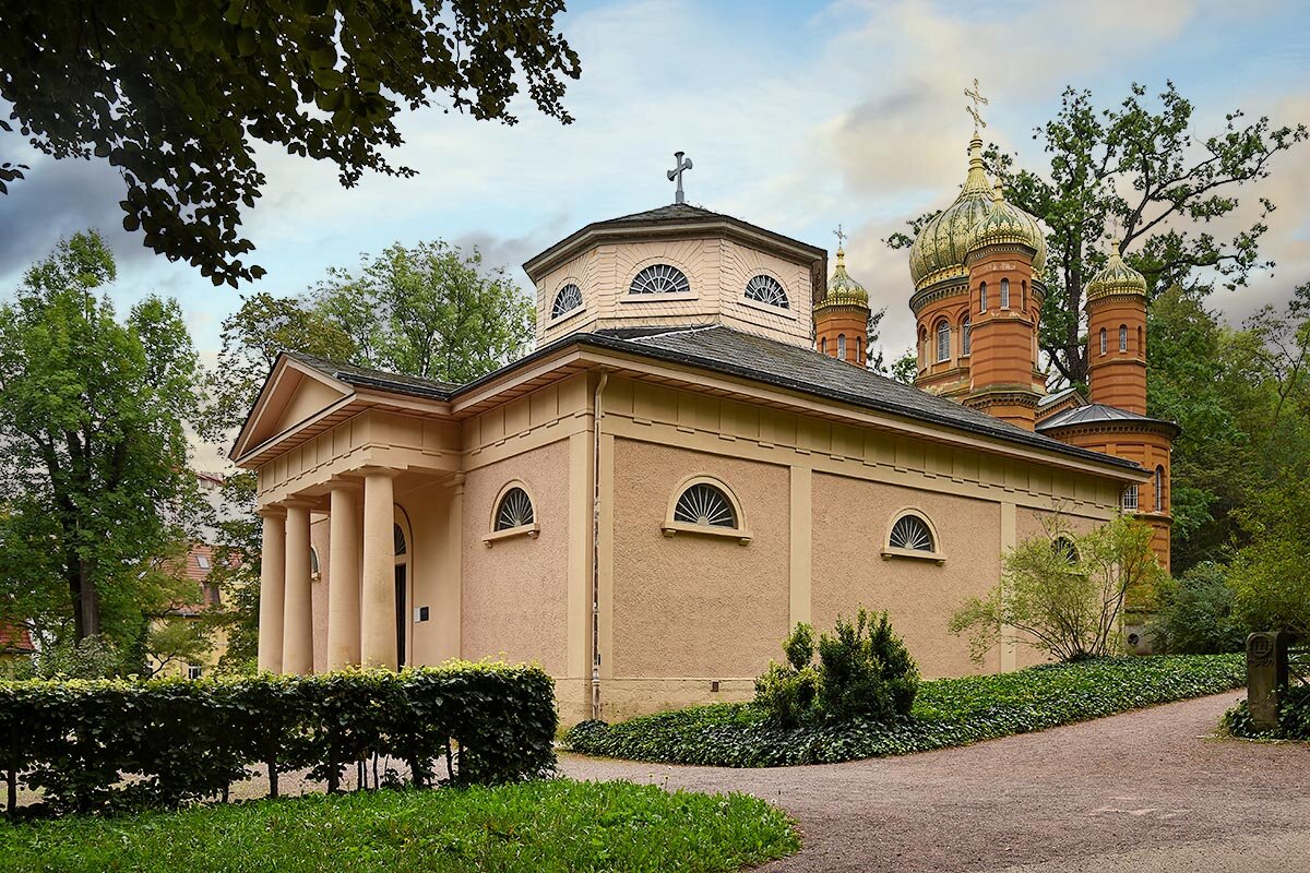 Die Fürstengruft befindet sich auf dem Historischen Friedhof in Weimar und wurde 1824-27 als Begräbnisstätte für das großherzogliche Haus Sachsen-Weimar-Eisenach erbaut. Die Gruft, die angrenzende Russisch Orthodoxe Kirche sowie die alten Gräber auf dem Friedhof sind wie ein aufgeschlagenes Geschichtsbuch in die Weimarer Vergangenheit.