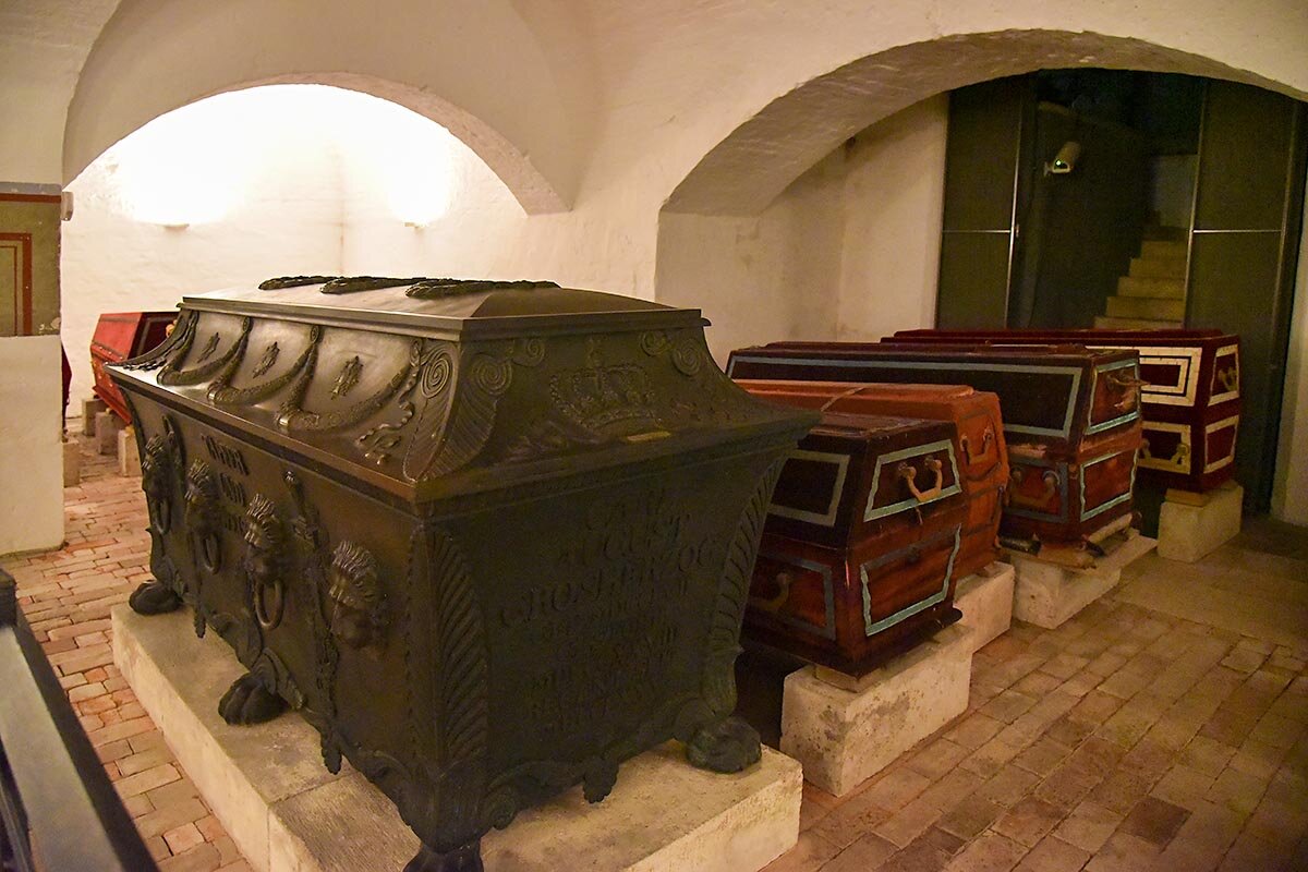 Nach dem Tod Carl Augusts 1828 und seiner Bestattung in der Fürstengruft verfügte sein Sohn Carl Friedrich 1832, dass auch Johann Wolfgang von Goethe an diesem Ort neben dem Dichterfreund seine letzte Ruhestätte dort finden sollte.