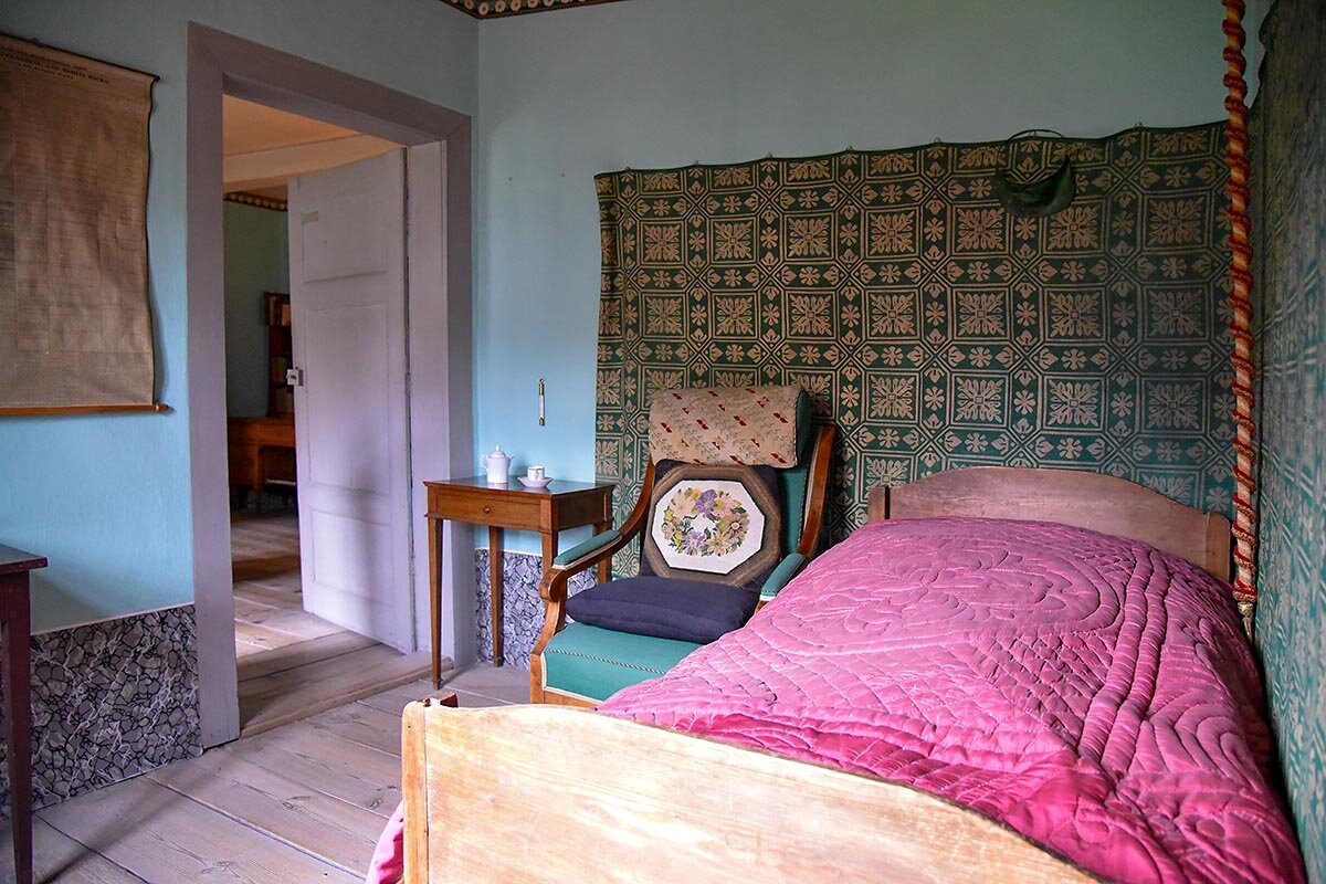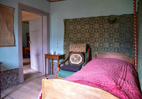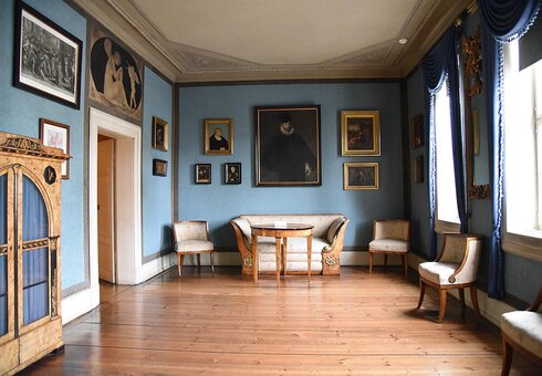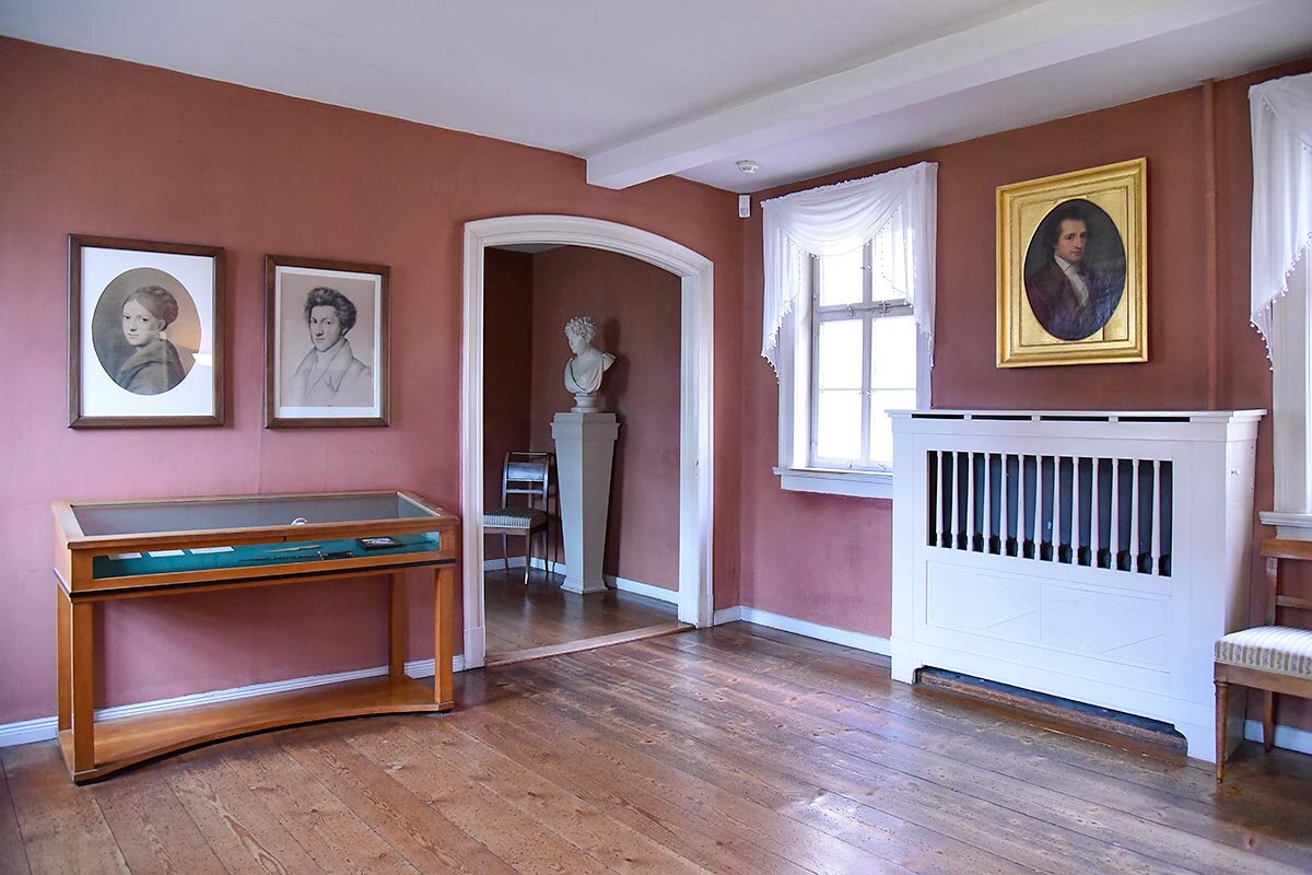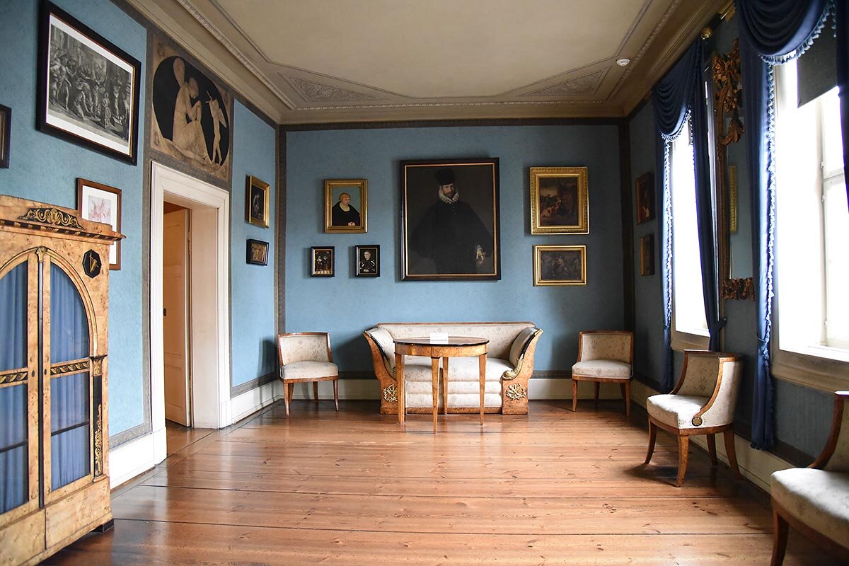 Besucher sind immer wieder überrascht, wie schlicht die engen Kammern eingerichtet sind. Aber Goethe liebte es so. "... prächtige Zimmer und elegantes Hausgerät sind etwas für Leute, die keine Gedanken haben und haben mögen ... alle Arbeiten von Bequemlichkeit sind eigentlich ganz gegen meine Natur. Sie sehen in meinem Zimmer kein Sofa; ich sitze immer in meinem alten hölzernen Stuhl... Eine Umgebung von bequemen und geschmackvollen Möbeln hebt mein Denken auf und versetzt mich in einen behaglichen passiven Zustand..." Und dieses Denken ließ hier bedeutende Werke wie "Wilhelm Meisters Wanderjahre", die "Wahlverwandschaften" und den "Faust" entstehen. In seinem Schlafzimmer ist Goethe in den Mittagsstunden des 22. März 1832 im Sessel sitzend gestorben.