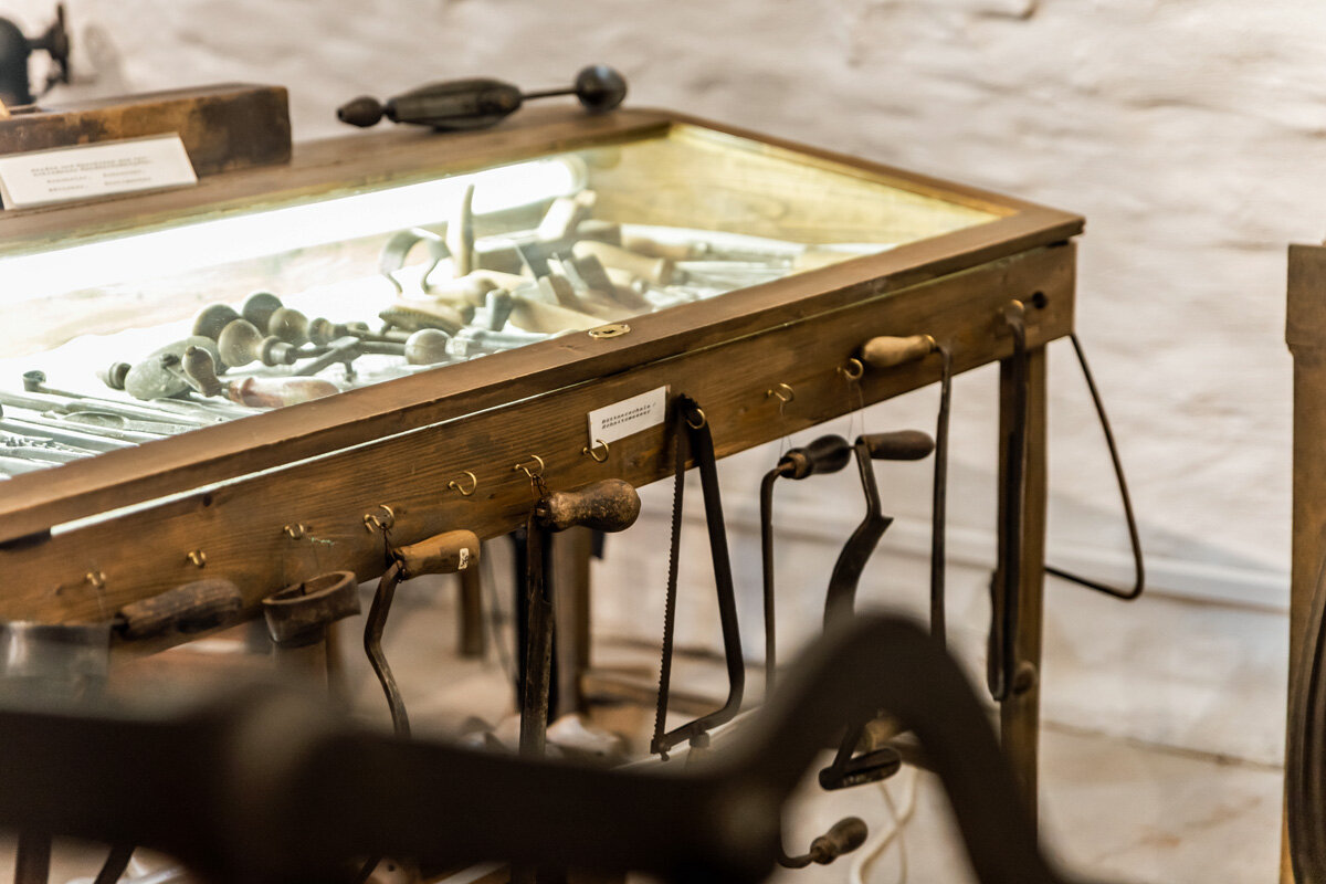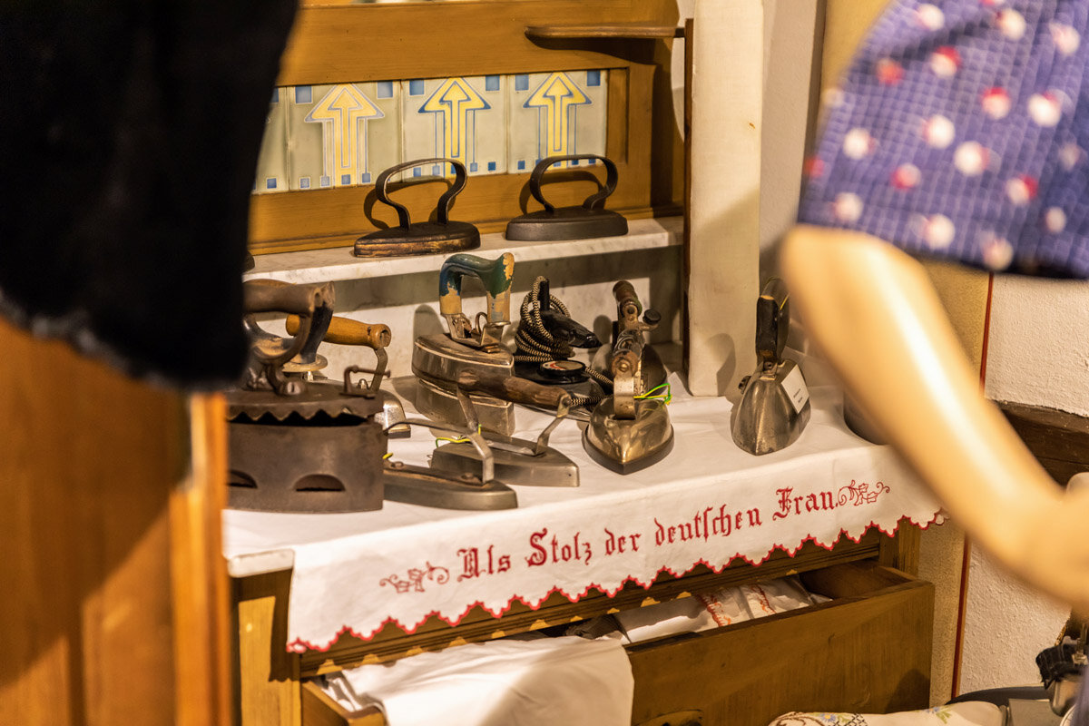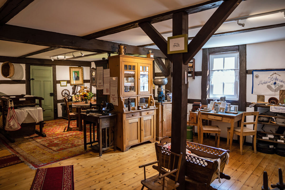 Küchenmöbel, Geschirr und Arbeitsgeräte der Hausfrau ab Beginn des vorigen Jahrhunderts entdeckt der Besucher in original hergerichteten Räumen.