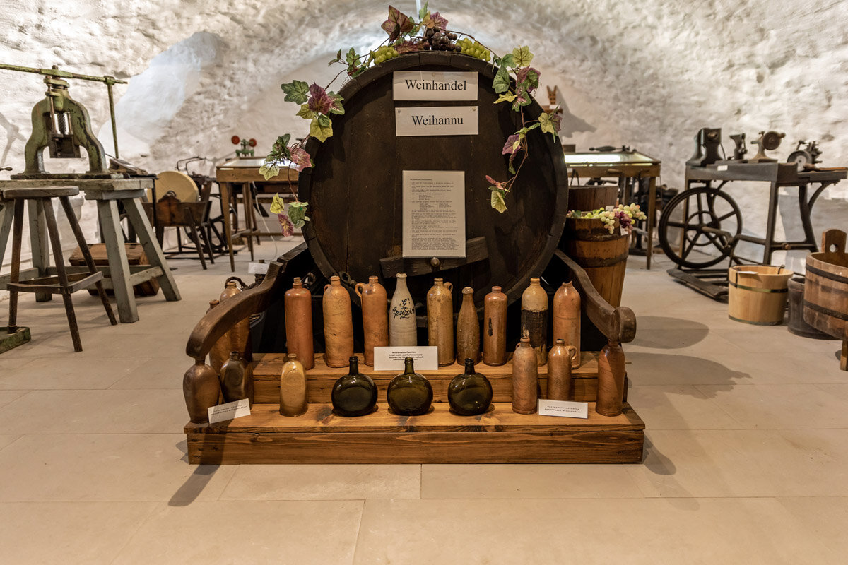 Vom Weinhandel, Handwerk und der Kleineisenindustrie sind Behältnisse, Werkzeuge, Maschinen und Fertigprodukte ausgestellt. Leiterwagen, Pflug, Egge, Dreschflegel u. a. landwirtschaftliche Geräte zeugen von der harten, nebenerwerblichen Tätigkeit der Bewohner.