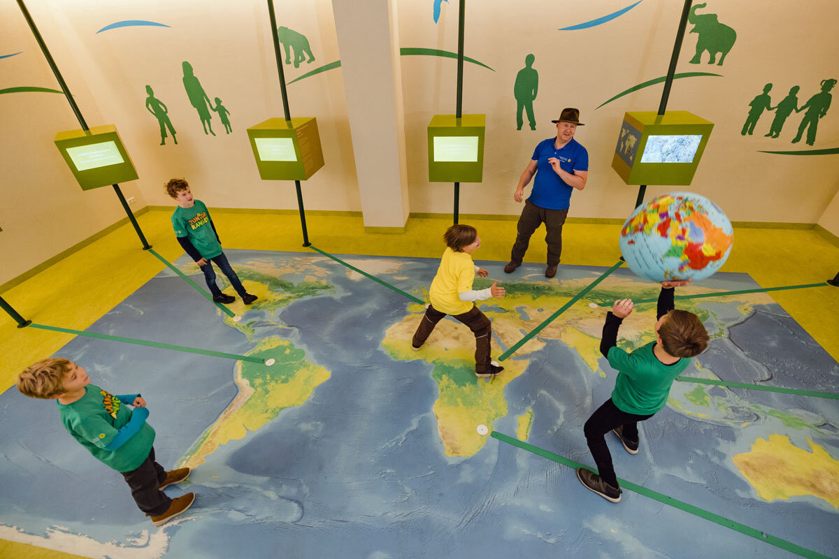 Unterschiedliche Inszenierungen laden ein, auf Streifzug durch die Themengebiete zu gehen. Vom Waldspaziergang über eine Tages- und Jahreszeiten Erfahrung bis hin zum Flug über die Weltkarte ist alles möglich.