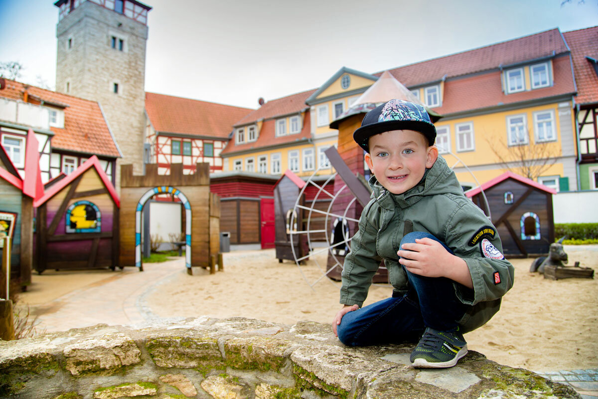 Kinder und Erwachsene tauchen in eine fantasievolle Welt ein, in der sie sich über Netzbrücken zu den Klettertürmen hangeln, die geheimnisvollen Baumhäuser erkunden, rasante Rutschpartien unternehmen oder im Sandbereich spielen. In einer riesigen Puppenstube, im Spielhaus, Schiff, Jeep, Tiergehege mit Holztieren, sowie in der Spielstadt gibt es viele Möglichkeiten, in die verschiedensten Rollen zu schlüpfen.