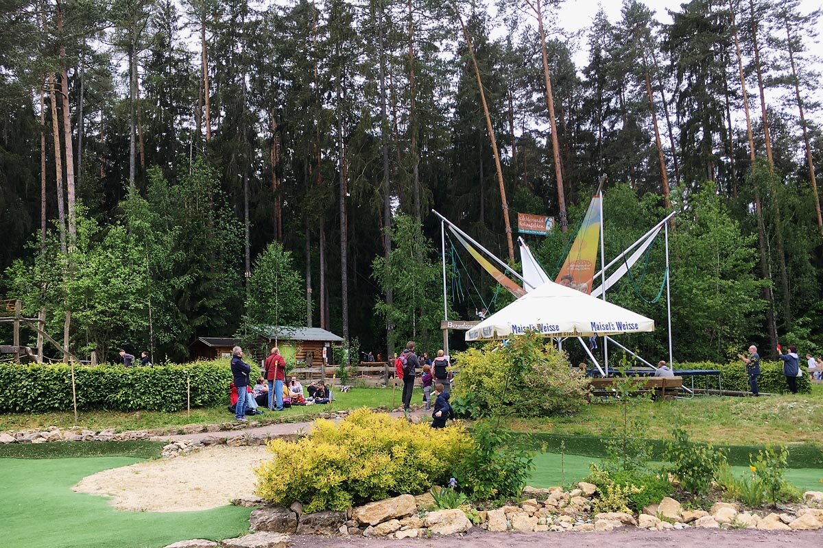 Unsere Snackterrasse bietet einen Imbiss mit einer aus 56 Sitzplätzen bestehenden und teils überdachten Sonnenterrasse. Es ist möglich, beim Verweilen alle Attraktionen einzusehen, inklusive den angrenzenden Kletterwald. An der Snackterrasse sind außerdem Golfschläger, Golfbälle und die Eintrittsbelege für das Bogenschießen erhältlich. Das Angebot beinhaltet Erfrischungsgetränke, Kaffee und Kuchen, verschiedene Eissorten sowie kalte und warme Snacks.