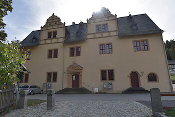 Als letztes Bauwerk im ehemaligen Klosterbereich wurde um 1620 südwestlich des Amtshauses das Jagdschloss errichtet. Das Renaissanceschlösschen zeichnet sich durch eine eindrucksvolle Fassade mit einem aufwendigem Mittelportal und Doppelfenstern sowie zwei Zwerchhäusern mit Treppengiebeln und geschweiften Gesimsen aus. Die Gliederung der Zwerchhäuser ist mit dem Giebel über dem Südportal der 1611 fertig gestellten Reithalle auf Schloss Heidecksburg in Rudolstadt verwandt. Die unregelmäßige Raumaufteilung im Erdgeschoss des Jagdschlosses lässt auf die Einbeziehung älterer Bauteile schließen. Vermutlich wurden Teile des ehemals hier befindlichen Abtshauses in den Neubau integriert.