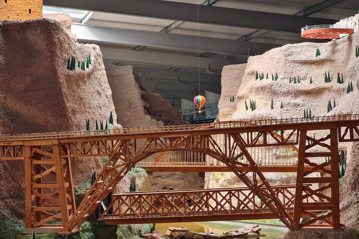 Nicht nur Kinderaugen leuchten, wenn die zahllosen Züge auf den Gleisen durch beeindruckende Landschaften mit Wasserläufen und historischen Bauten rollen.
