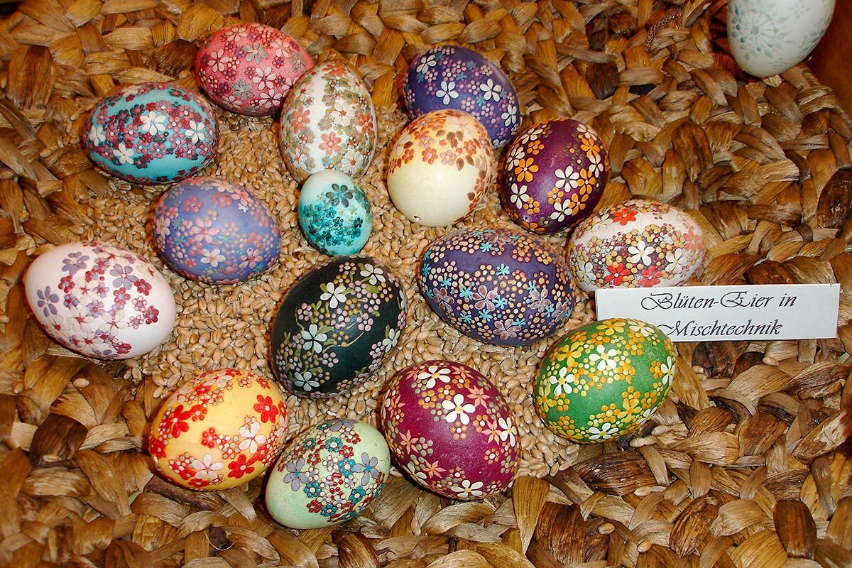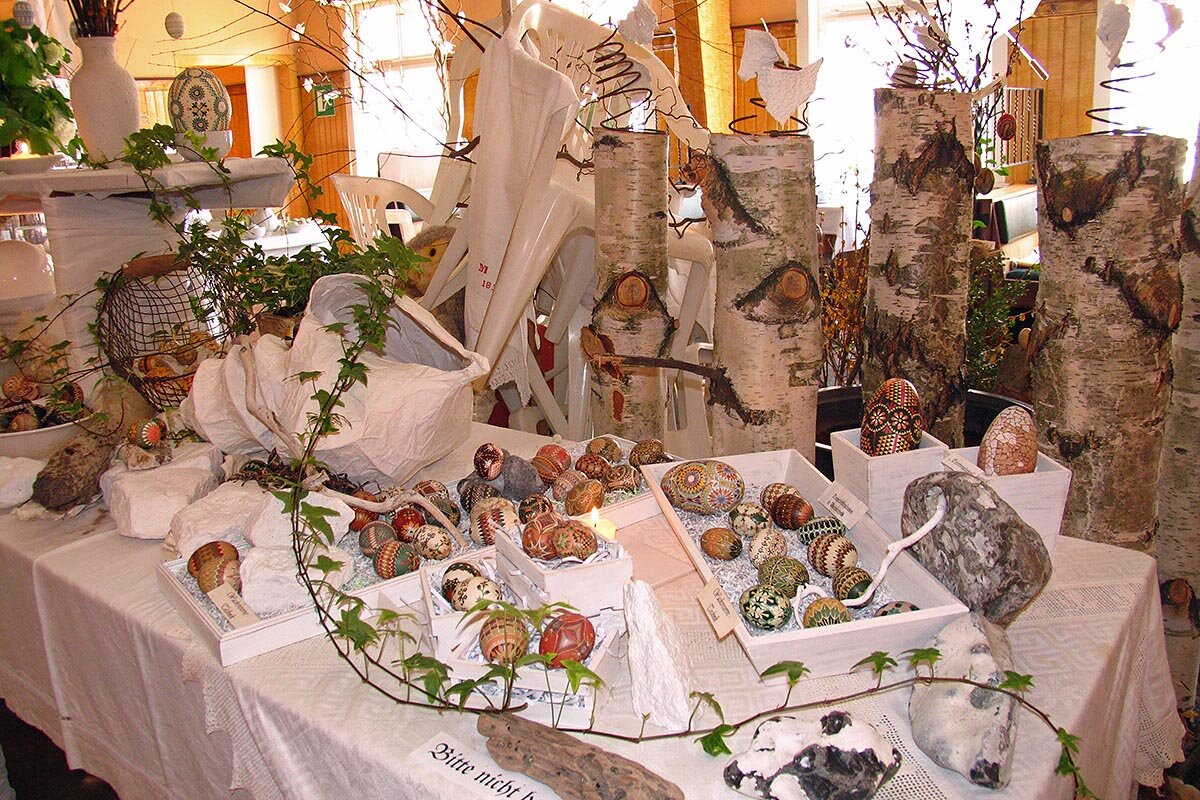 Als Kind hat sie Ostereier bemalt wie andere Mädchen und Jungen auch. Später dann, als die eigene Tochter da war, gestaltete sie mit ihr Ostereier - mit Filzstiften bemalt und Stroh verziert - und fand zunehmend Gefallen daran.