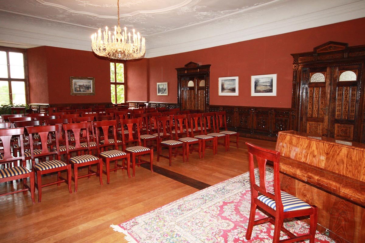 In der nächsten Etage zieht der Festsaal mit seinen Kerbschnitzereien und der restaurierten Stuckdecke den Besucher in seinen Bann. Die Geschichte des Schlosses, der Stadt und herausragender Persönlichkeiten Römhilds und ihr Wirken schliessen sich an.